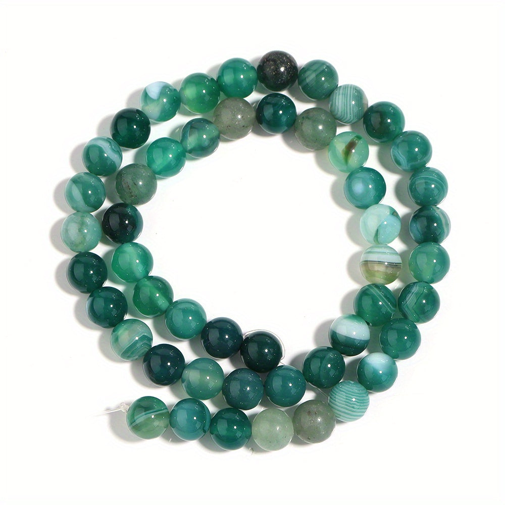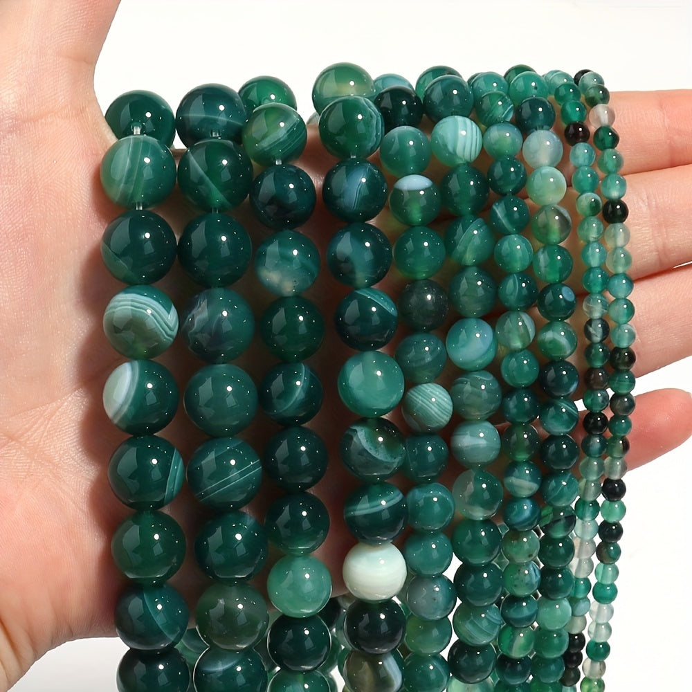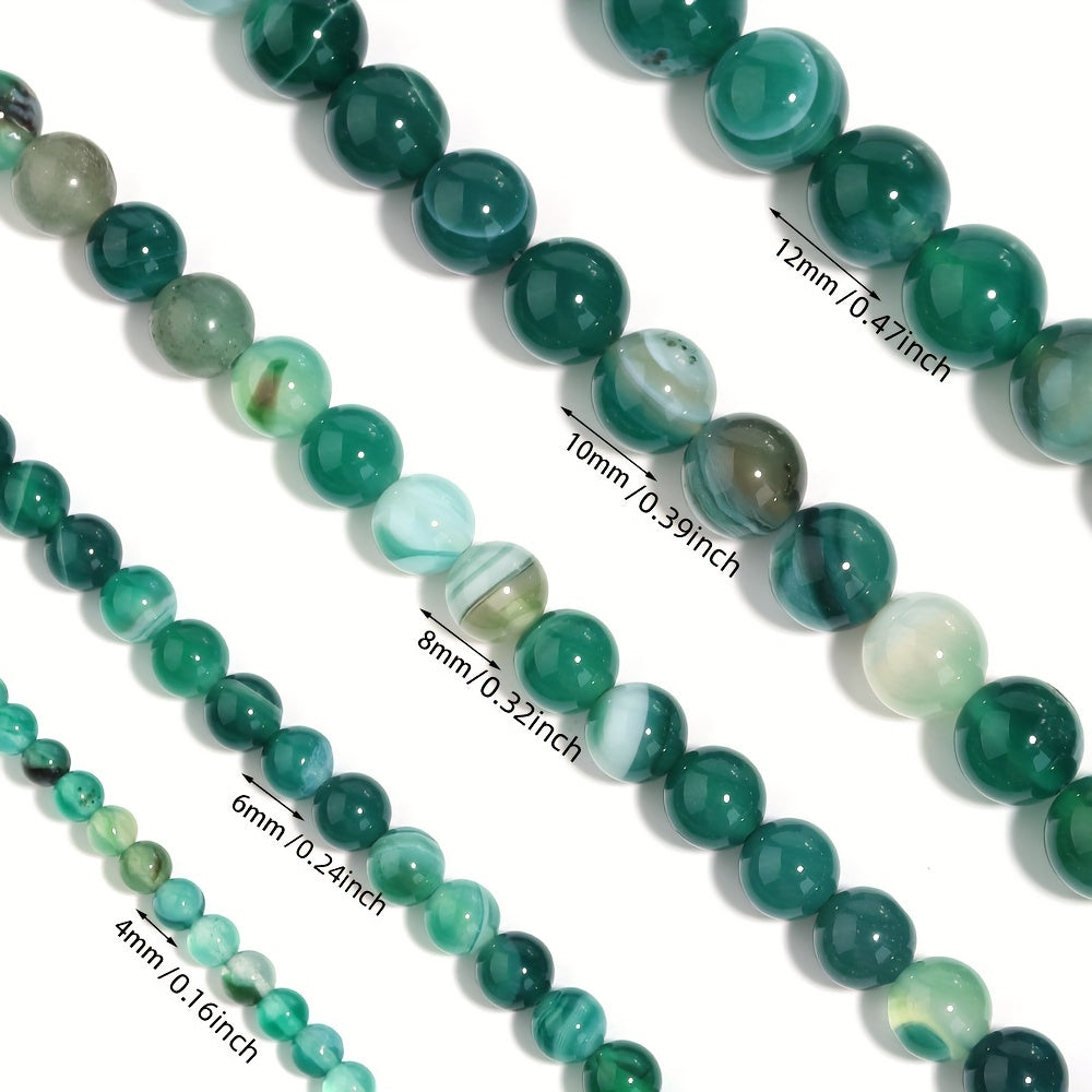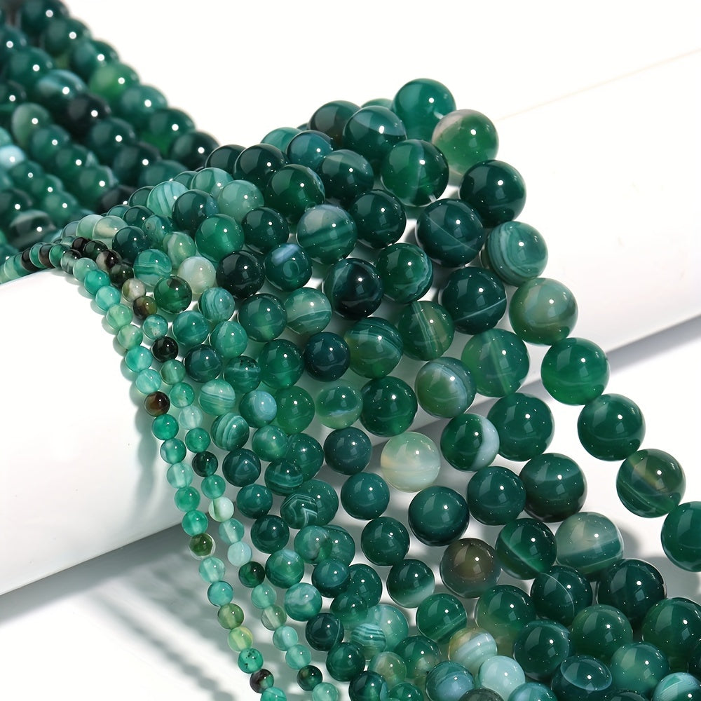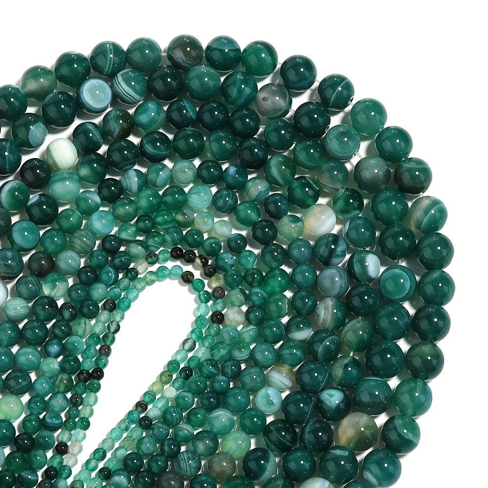 Create beautiful bracelets and necklaces with these green striped agate beads. Perfect for crafts and jewelry projects.