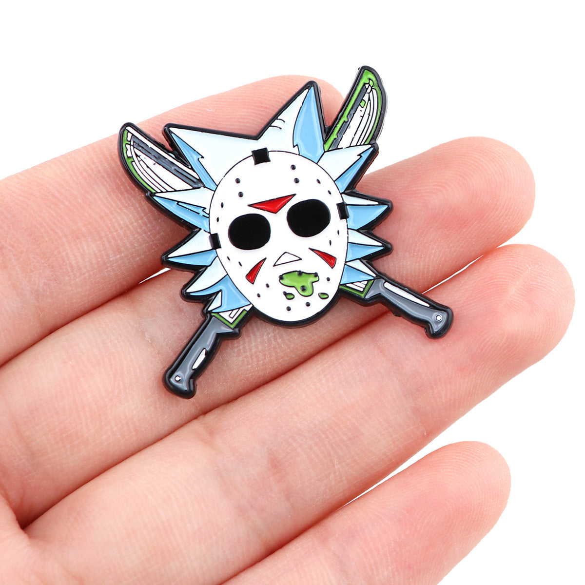Add a spooky touch to your outfit with this Halloween horror mask enamel painted brooch. Perfect for coats, shirts, or backpacks.