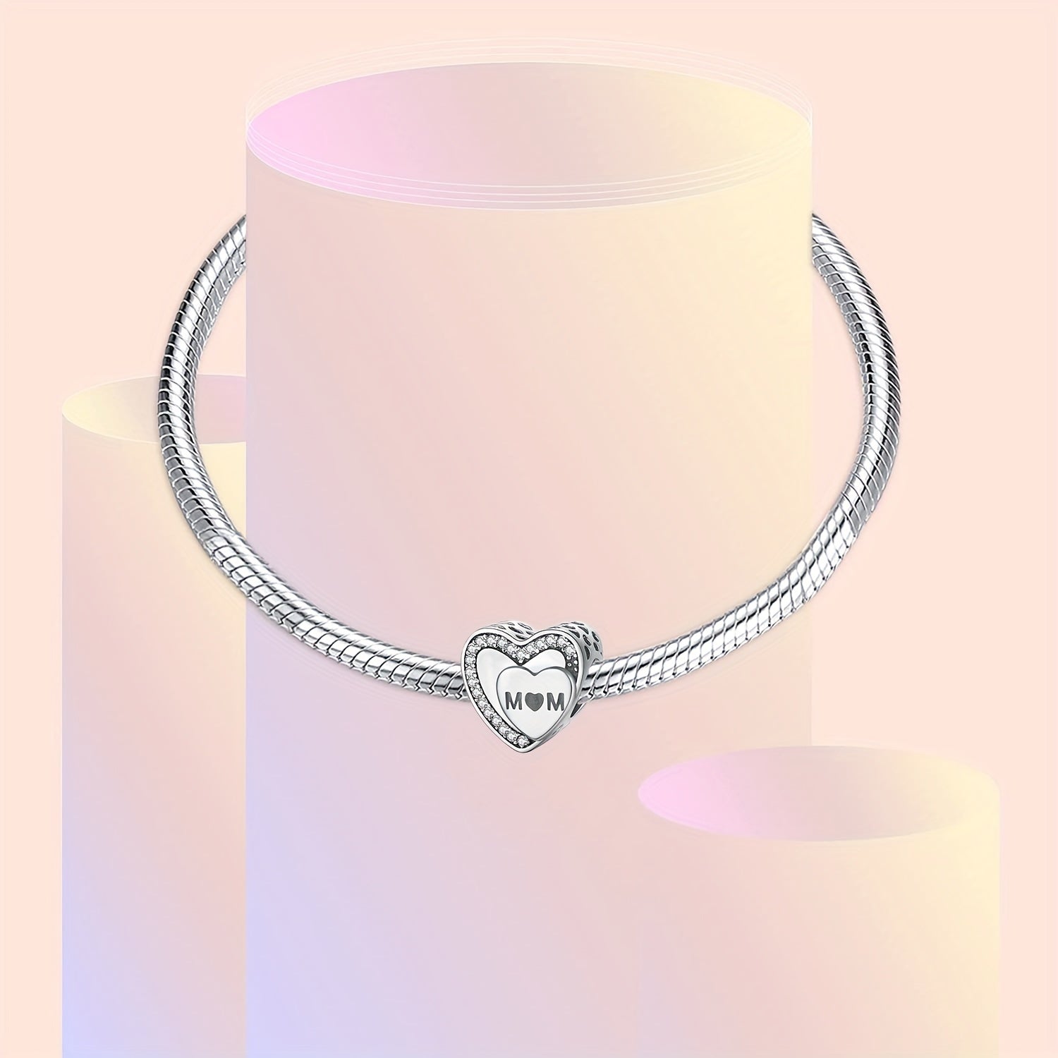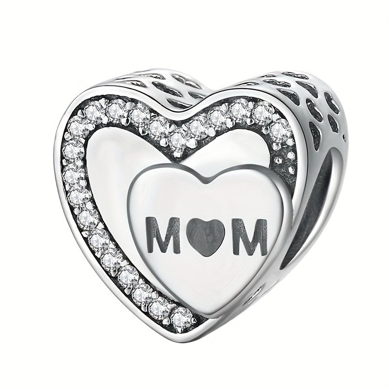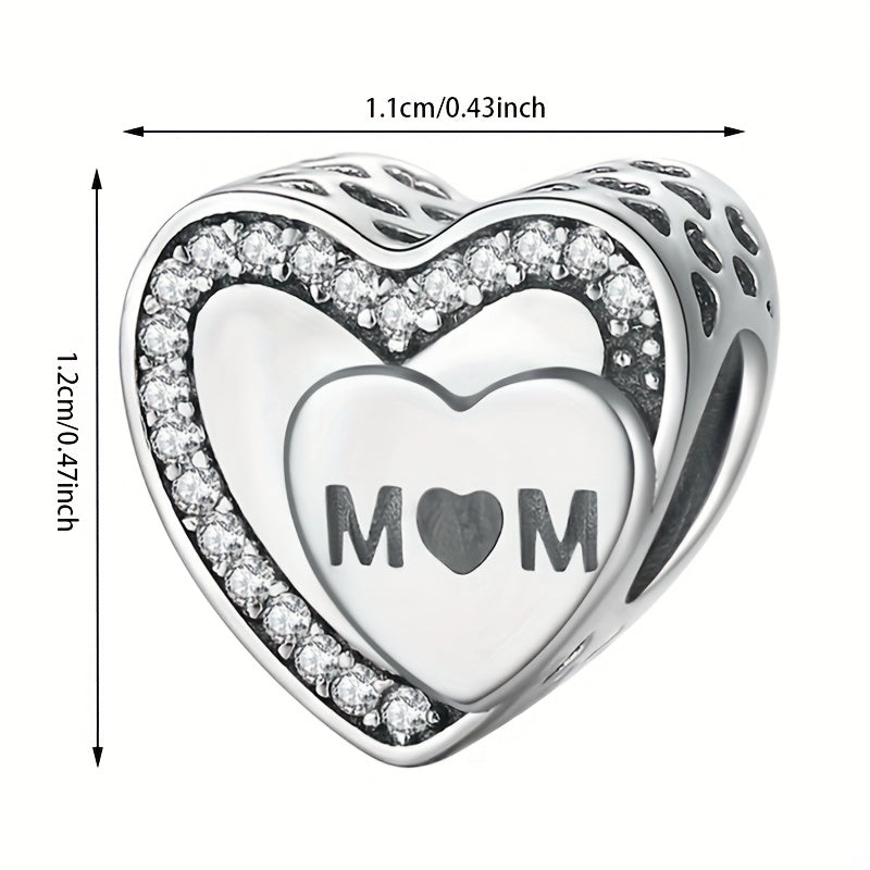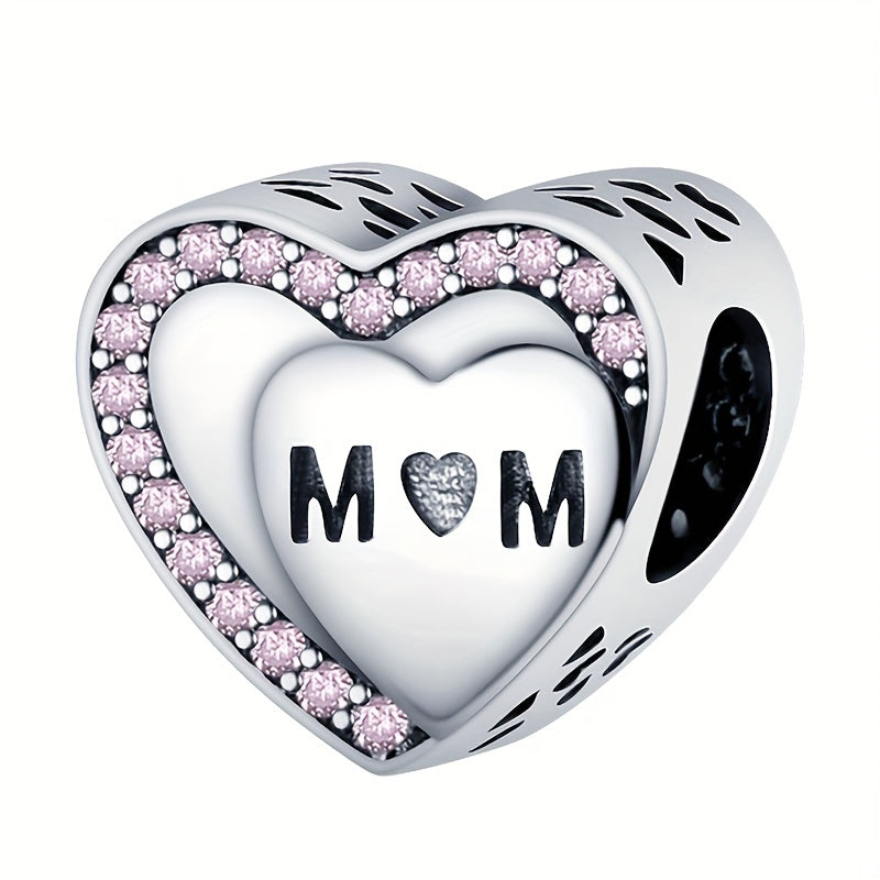 This heart shaped charm bead with MOM inscription inlaid with zircon is perfect for creating personalized bracelets or necklaces. Ideal for DIY jewelry making, it is a thoughtful gift for mothers.