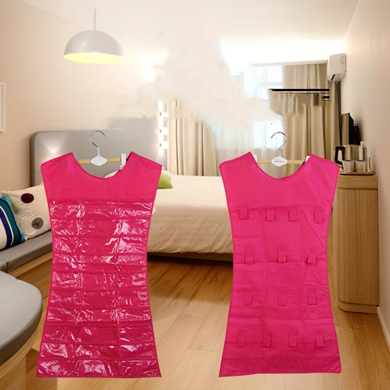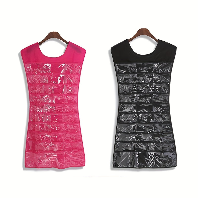 This hanging storage bag is a convenient solution for organizing and storing jewelry or small items. It can be hung in a closet, on a hook, or on a rod.