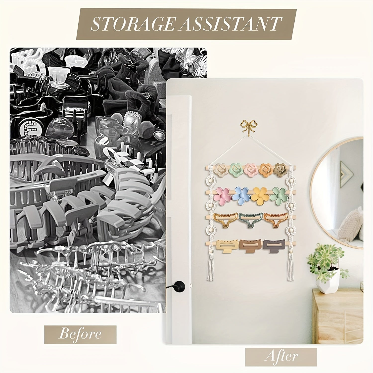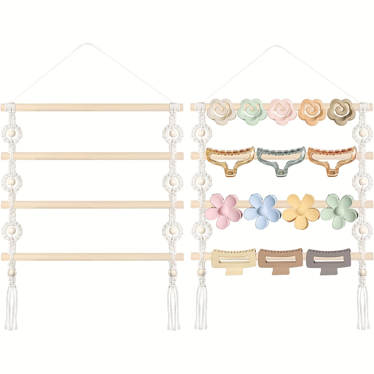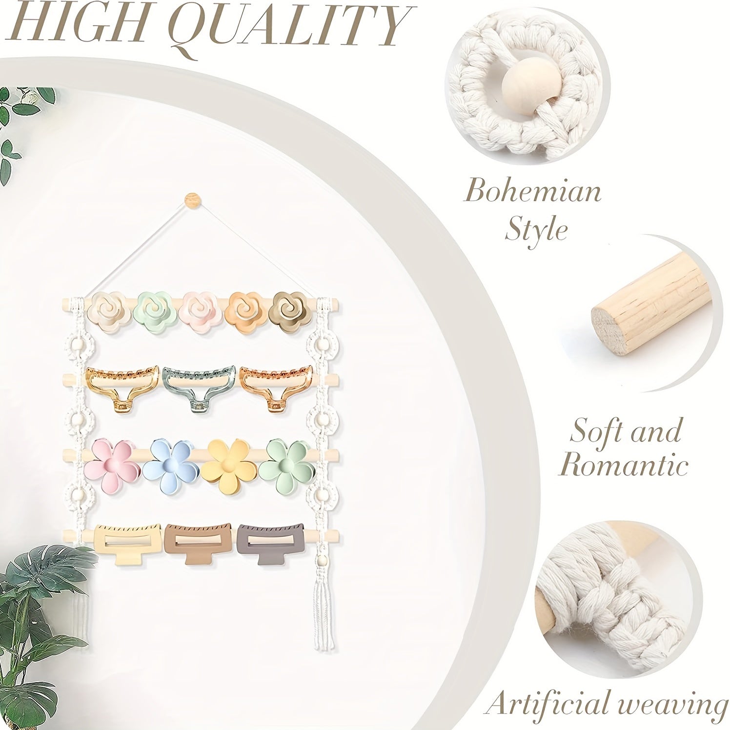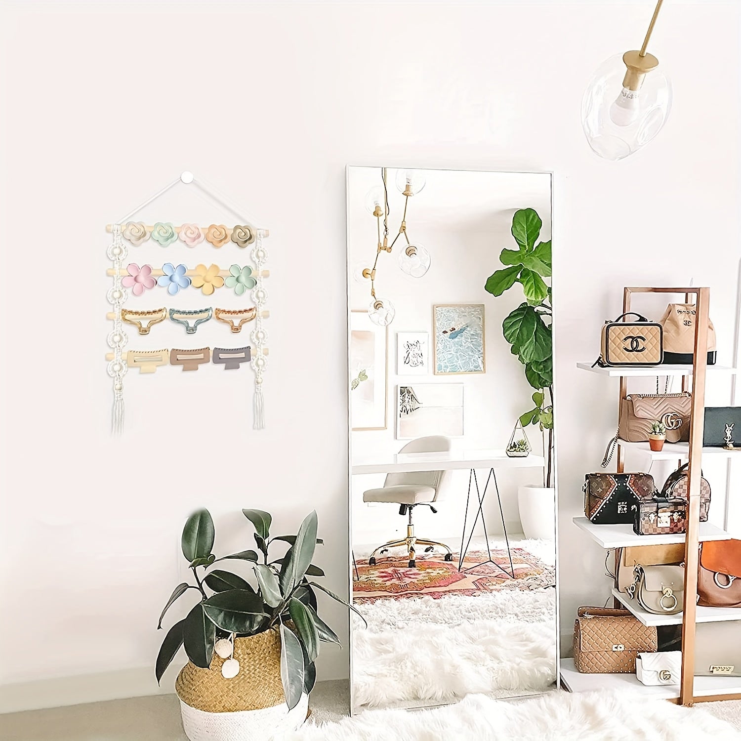 This wall-mounted rack is designed to store lace claw clips, flower hairpins, and other hair accessories for girls.