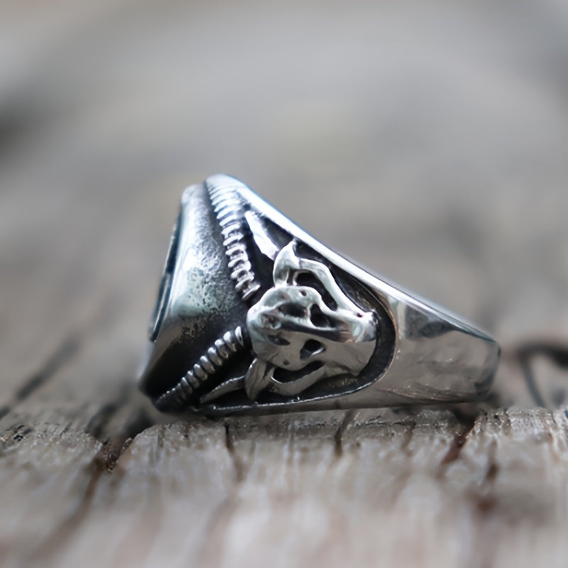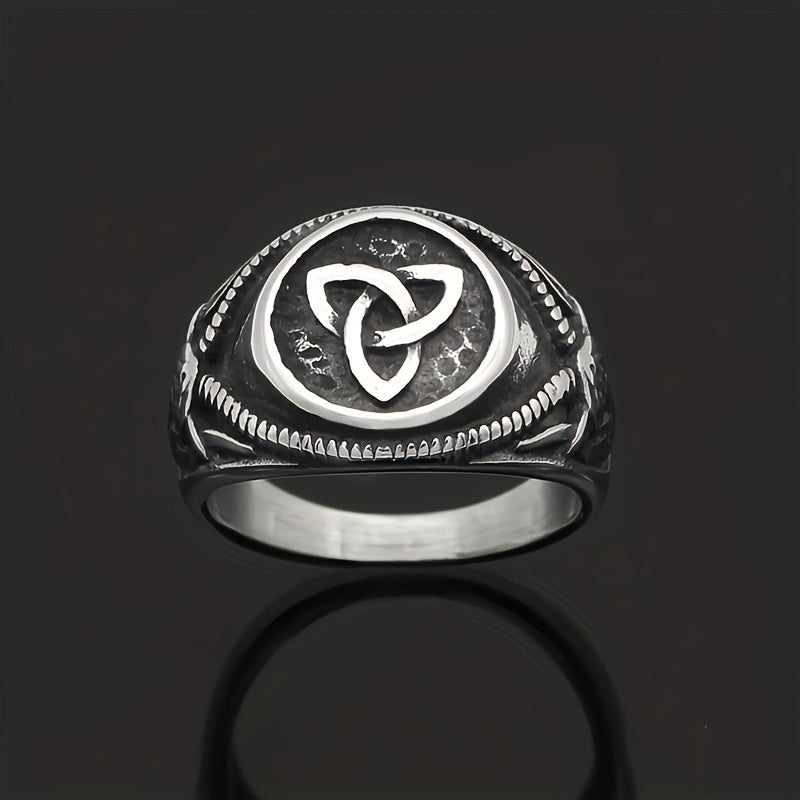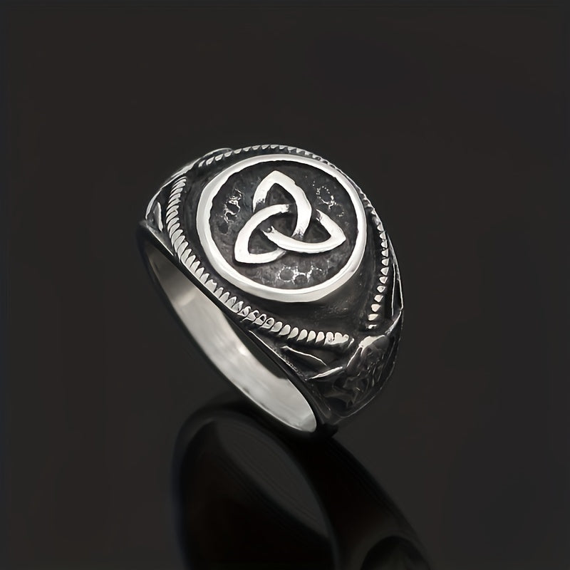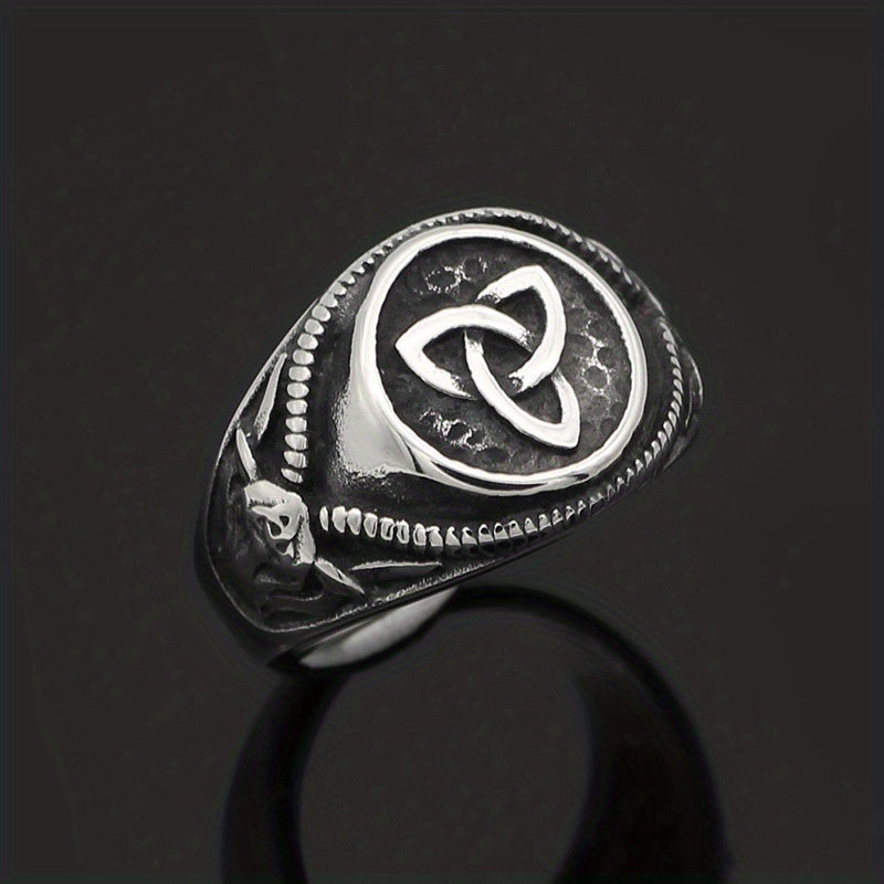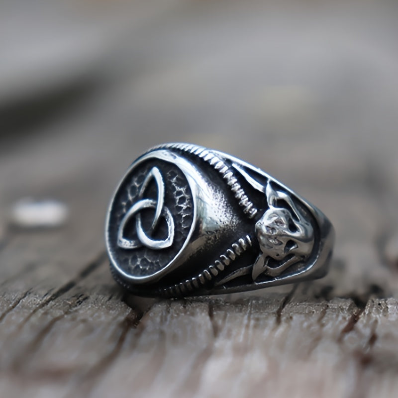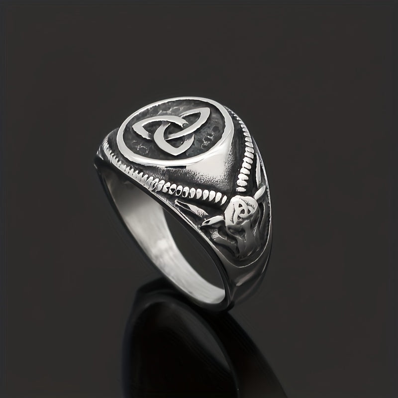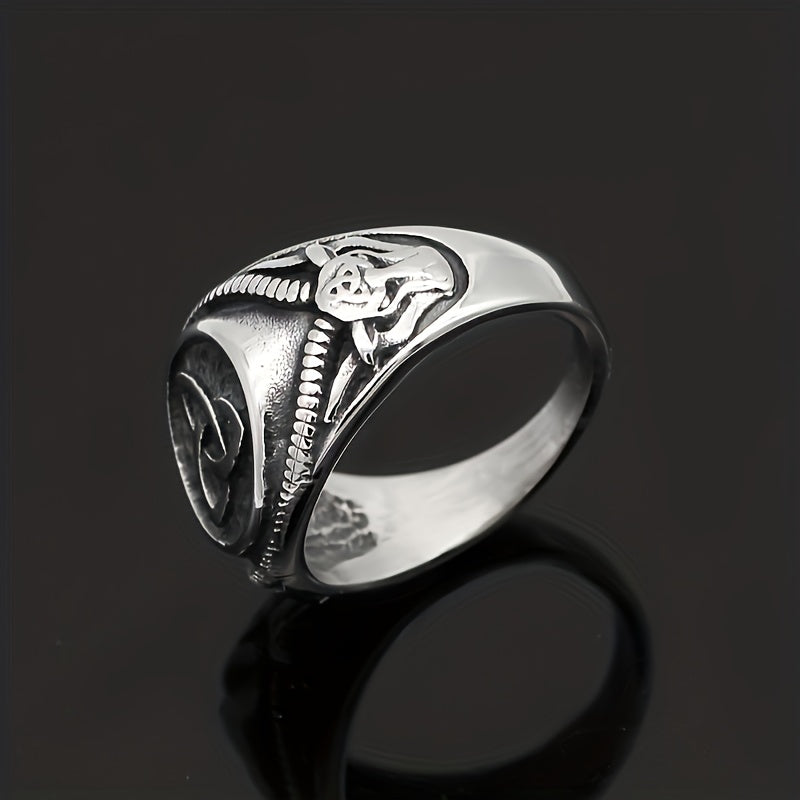 This ring features a celtic knot design with a devil goat amulet, making it a unique piece of artificial jewelry for men.