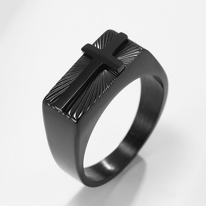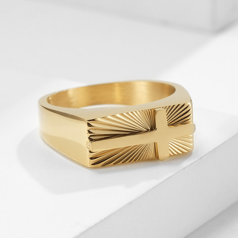 This European and American men's ring features a seal design with a holy light cross. Made of metal with silver and golden plating, it is a stylish and unique accessory for any outfit.
