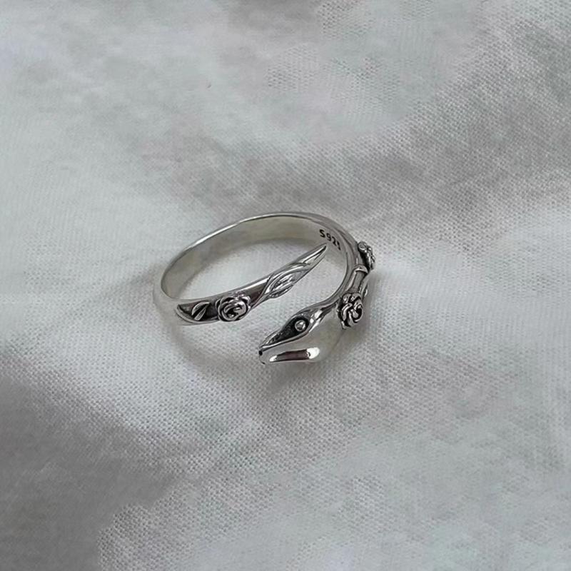 Embrace the dark side with this retro silvery snake ring inspired by swamps. Perfect for men who love unique and edgy accessories.