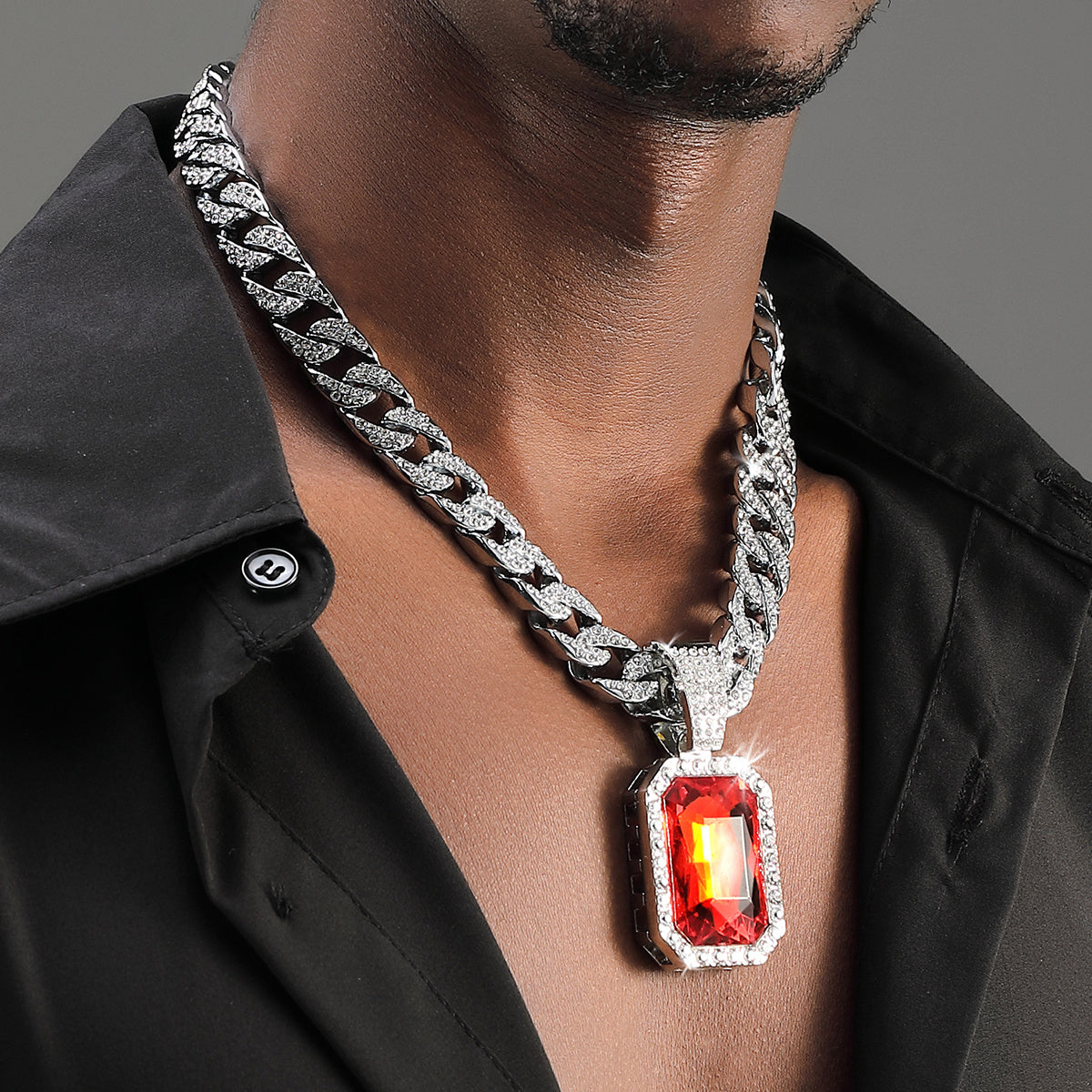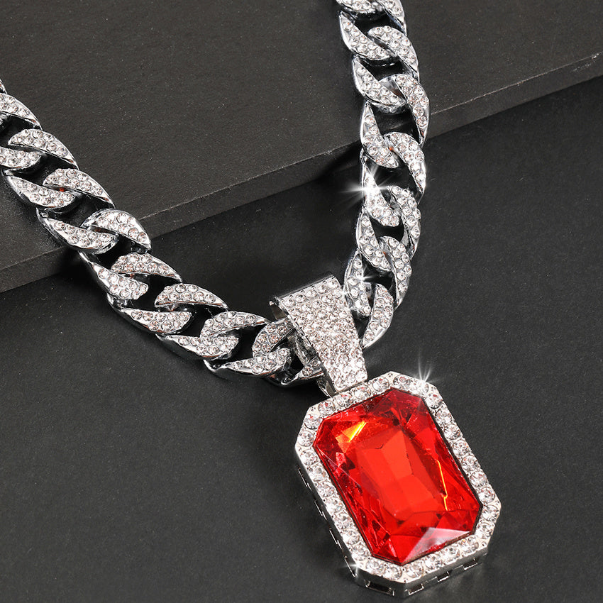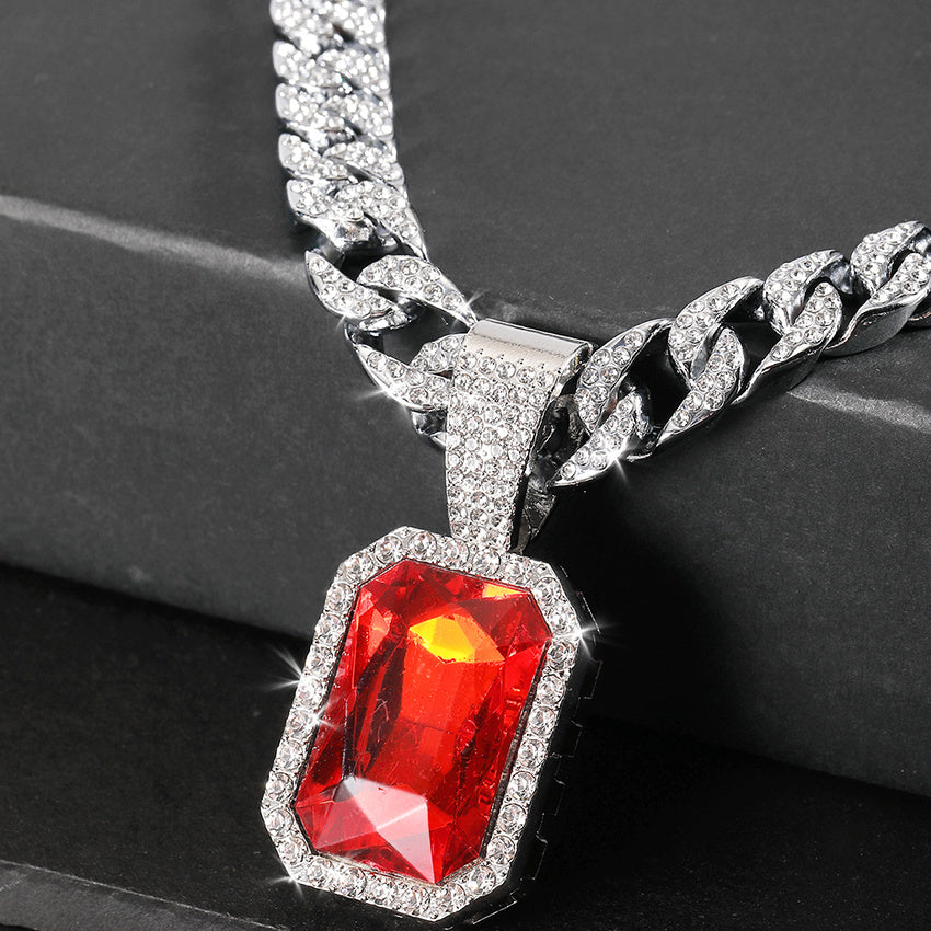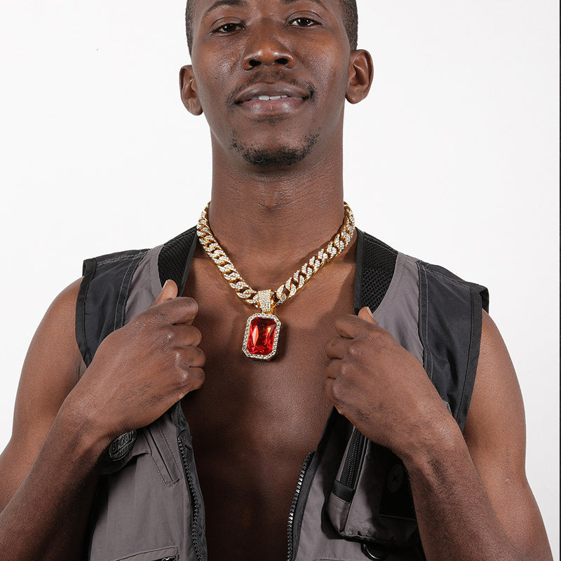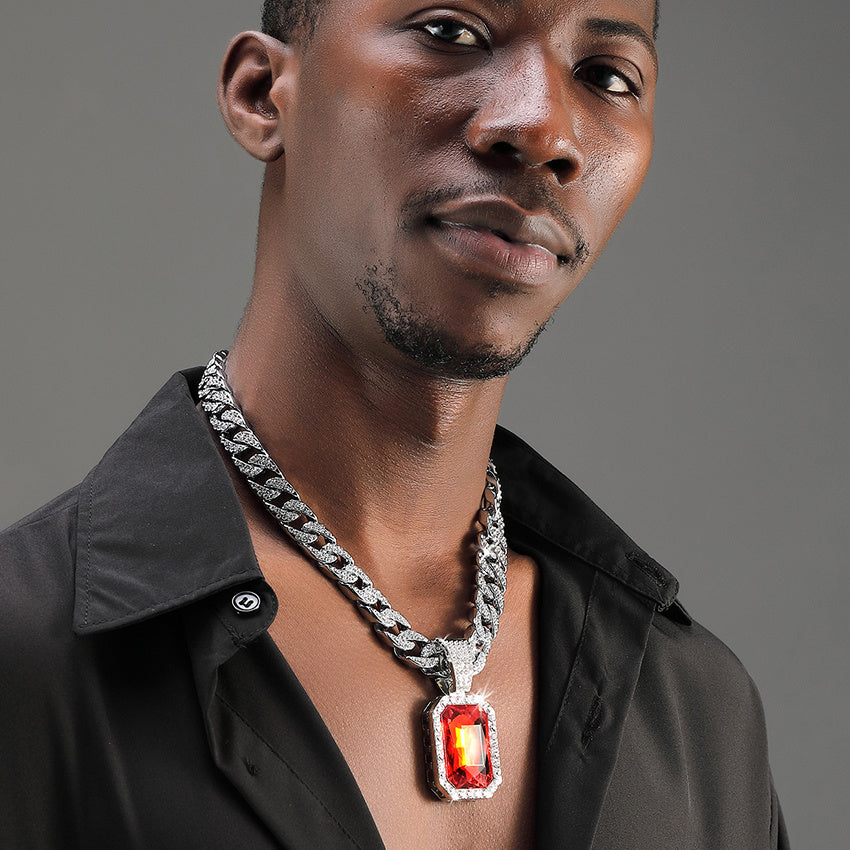 Add a touch of hip hop style to your look with this men's square ruby pendant featuring a sleek Cuban chain.