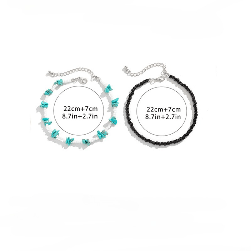 Enhance your foot jewelry collection with this 2pcs set of men's anklets featuring turquoise bead decoration. Perfect for beach days and stacking with other anklets.