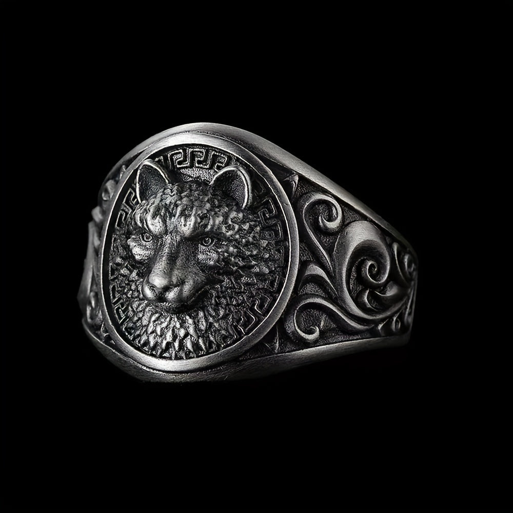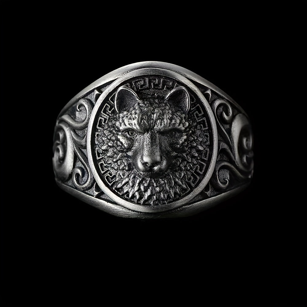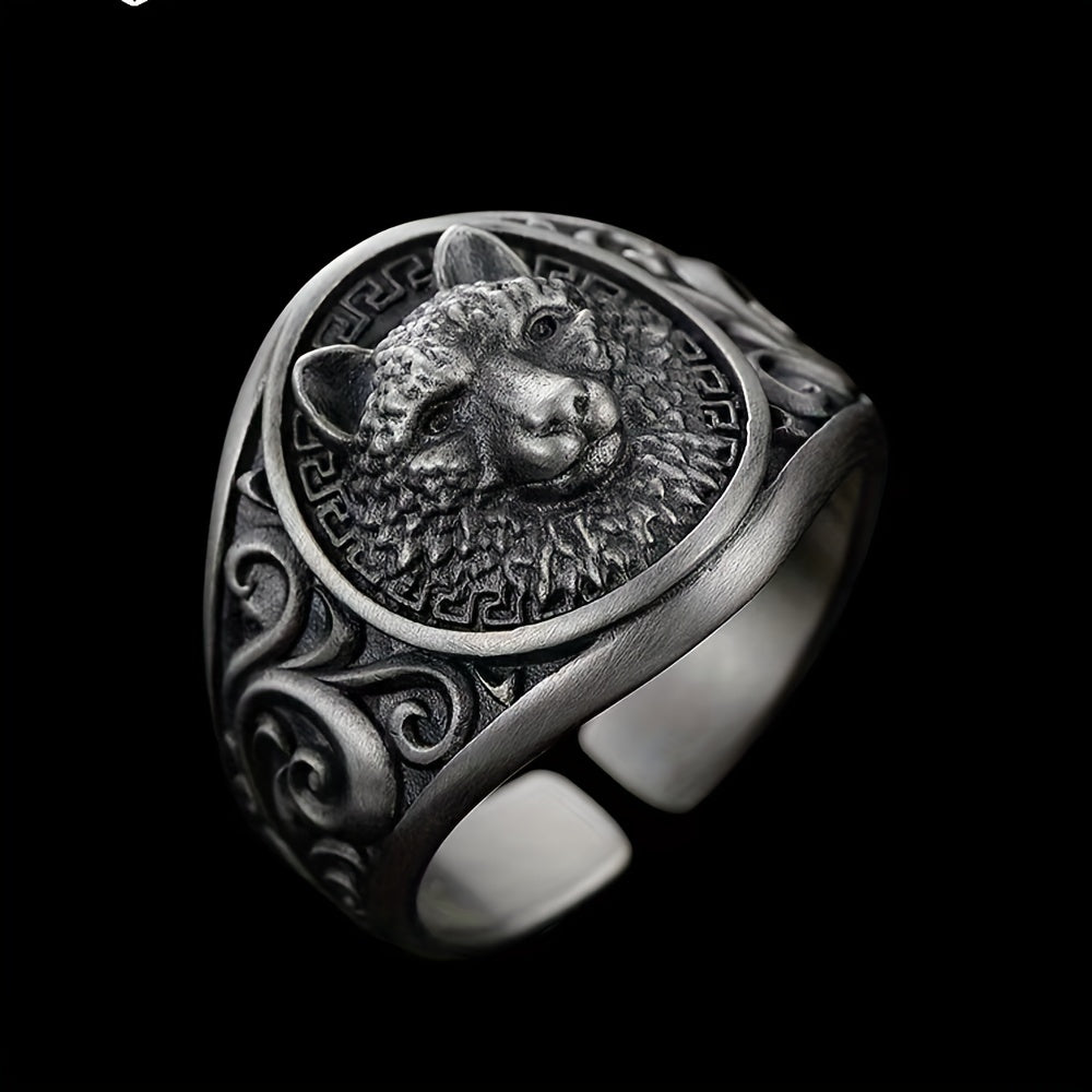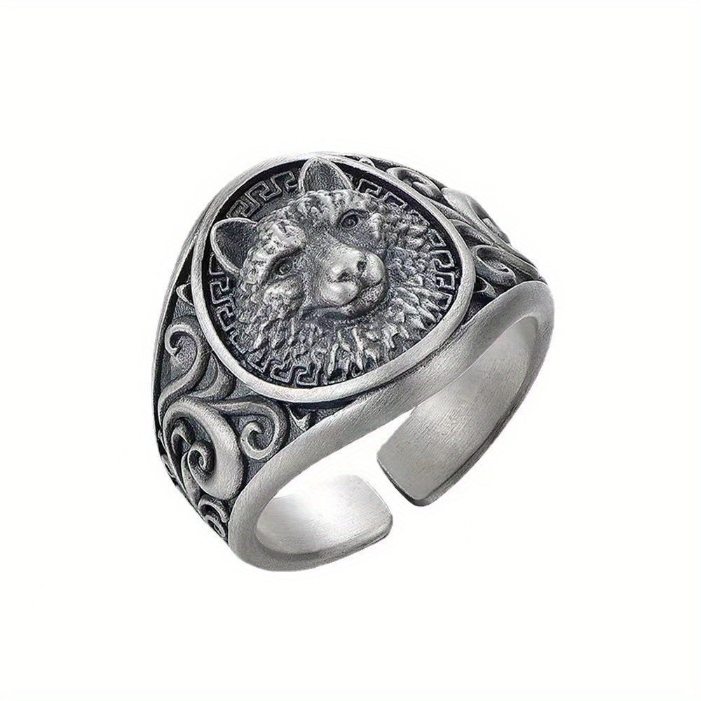 Embrace your wild side with this men's wolf head ring. The ring features a retro design and an adjustable opening for a comfortable fit.