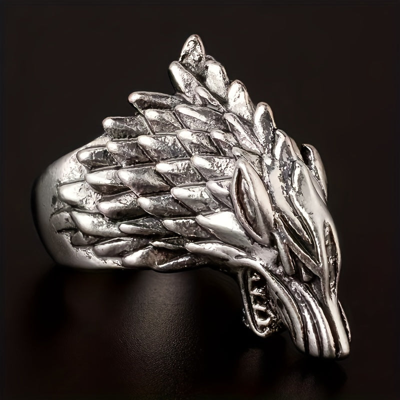 Make a bold statement with this vintage-inspired wolf head ring. It exudes a powerful and commanding vibe that sets you apart.