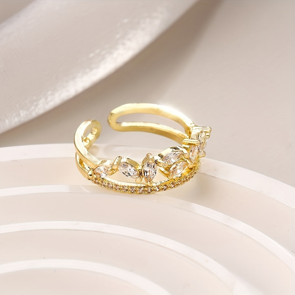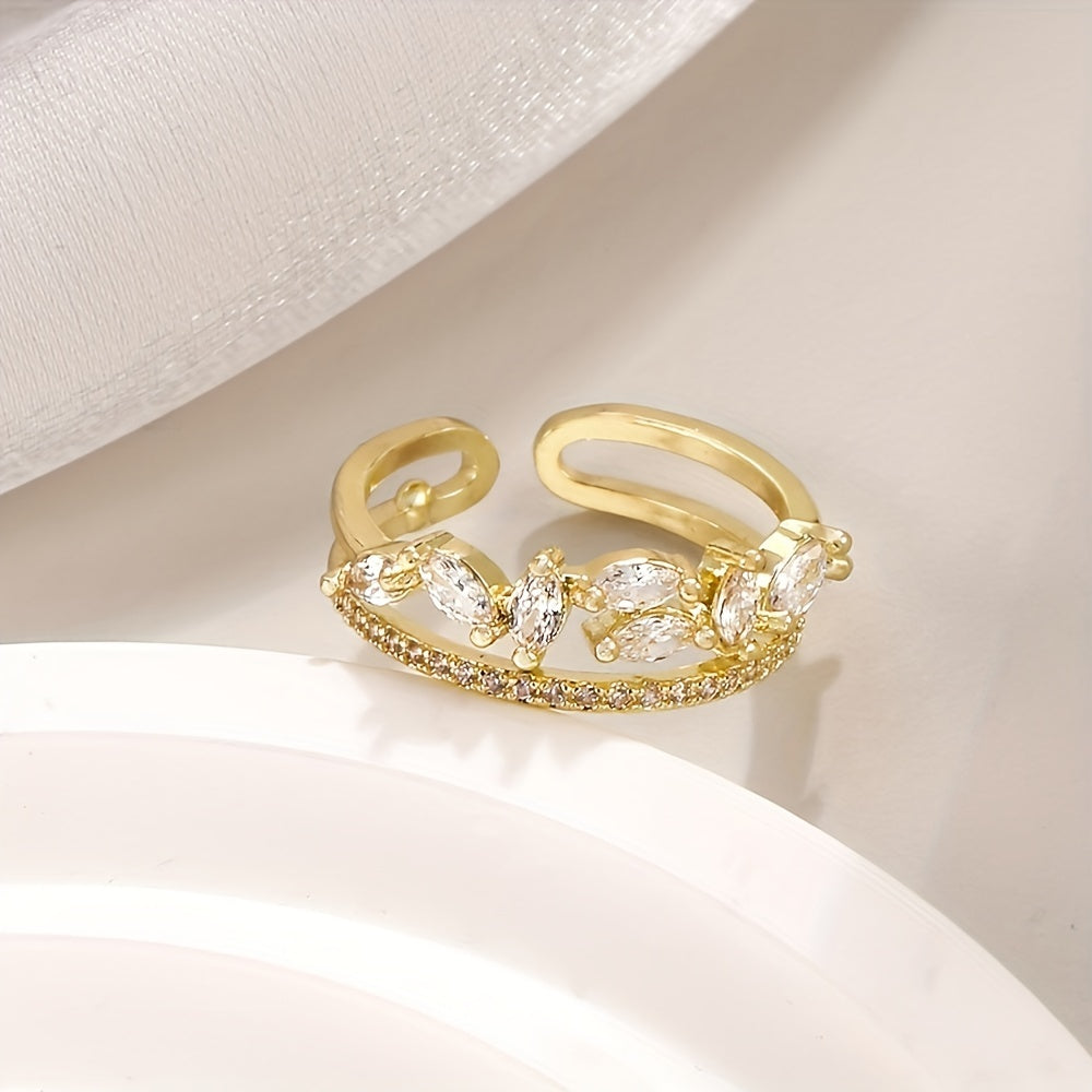 This men's ring features a double hollow design with zircon embellishments. It has an adjustable opening for a comfortable fit.