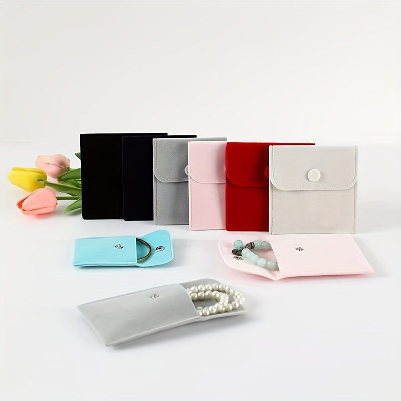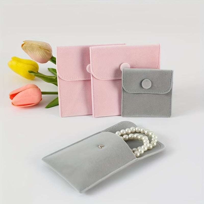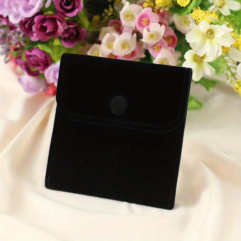 Keep your jewelry safe and organized with this mini velvet snap button bag. Perfect for storing small pieces of jewelry.