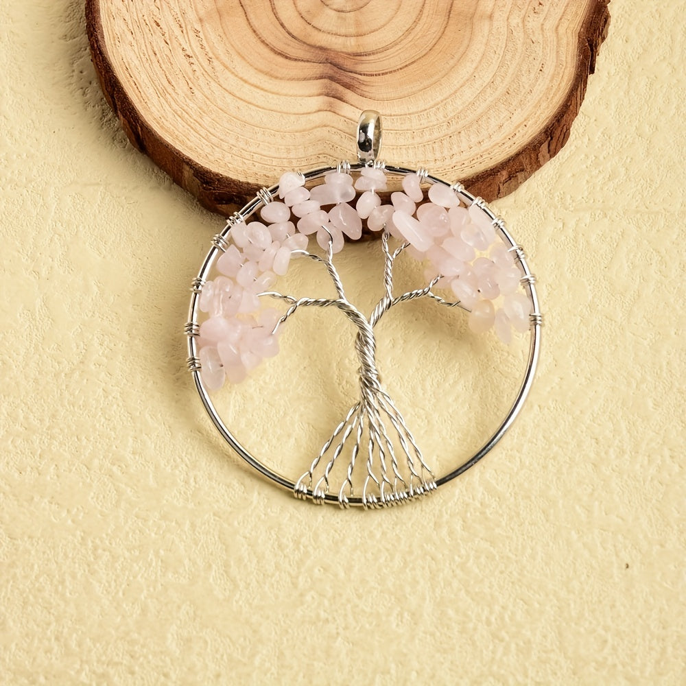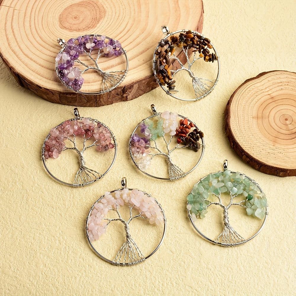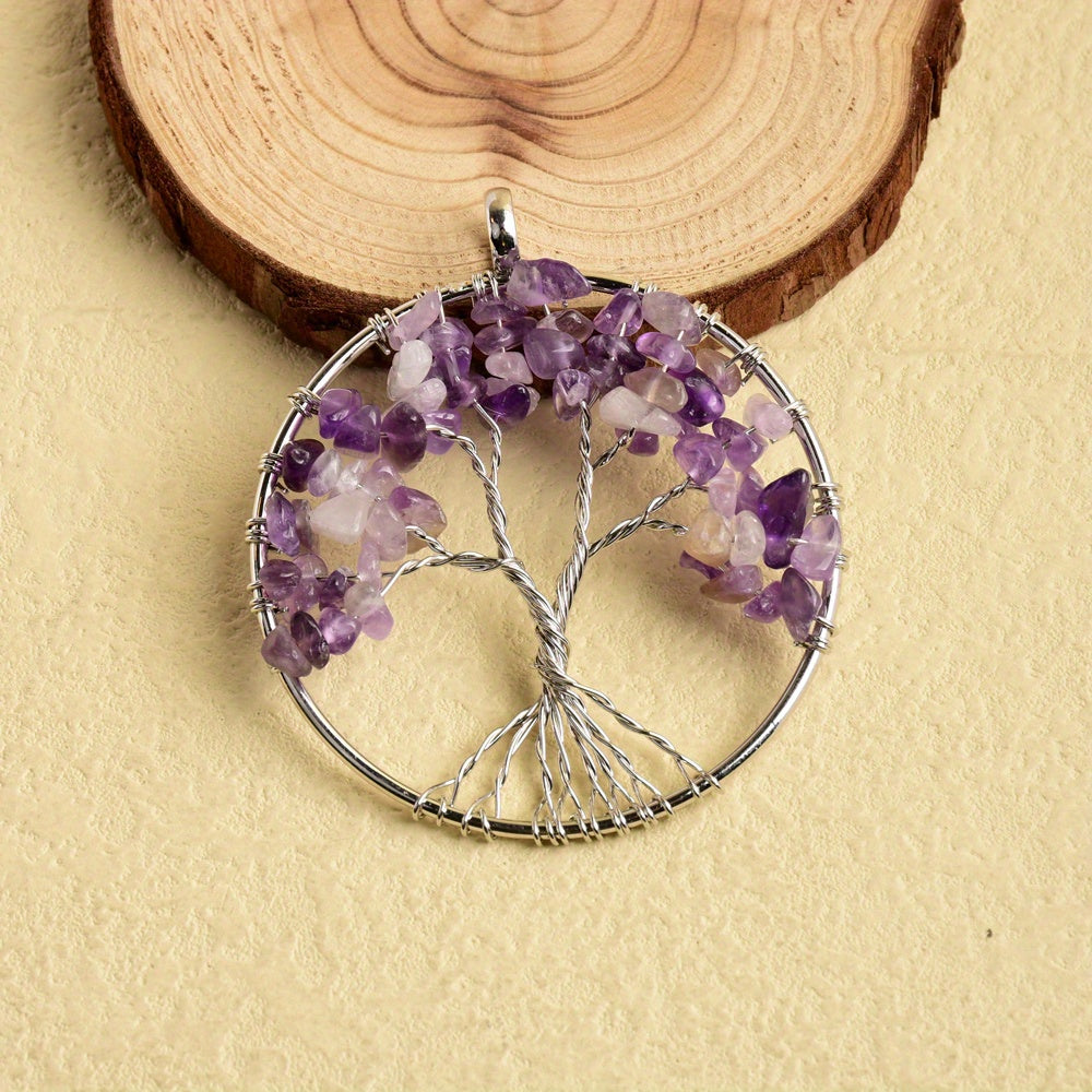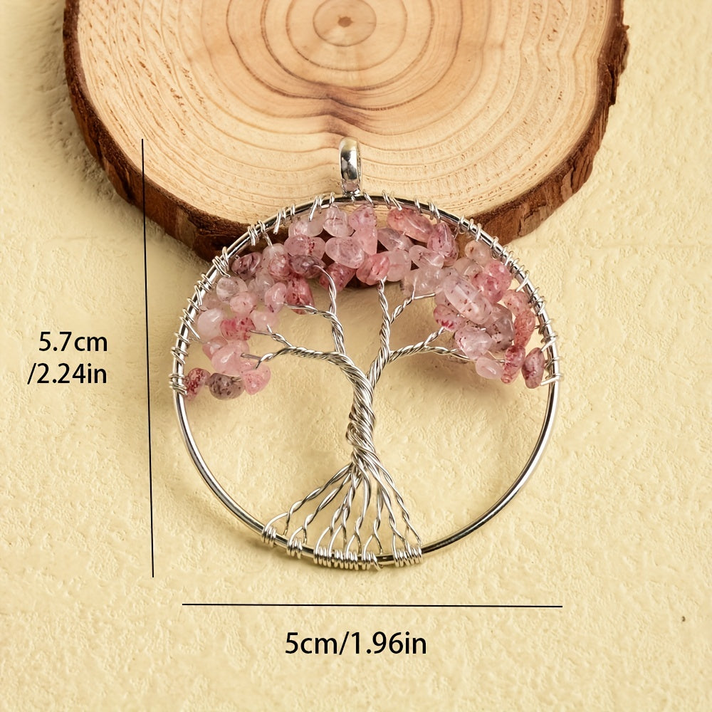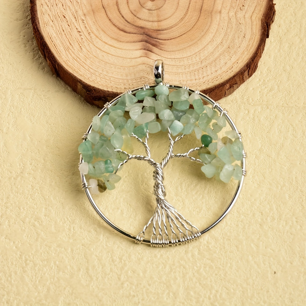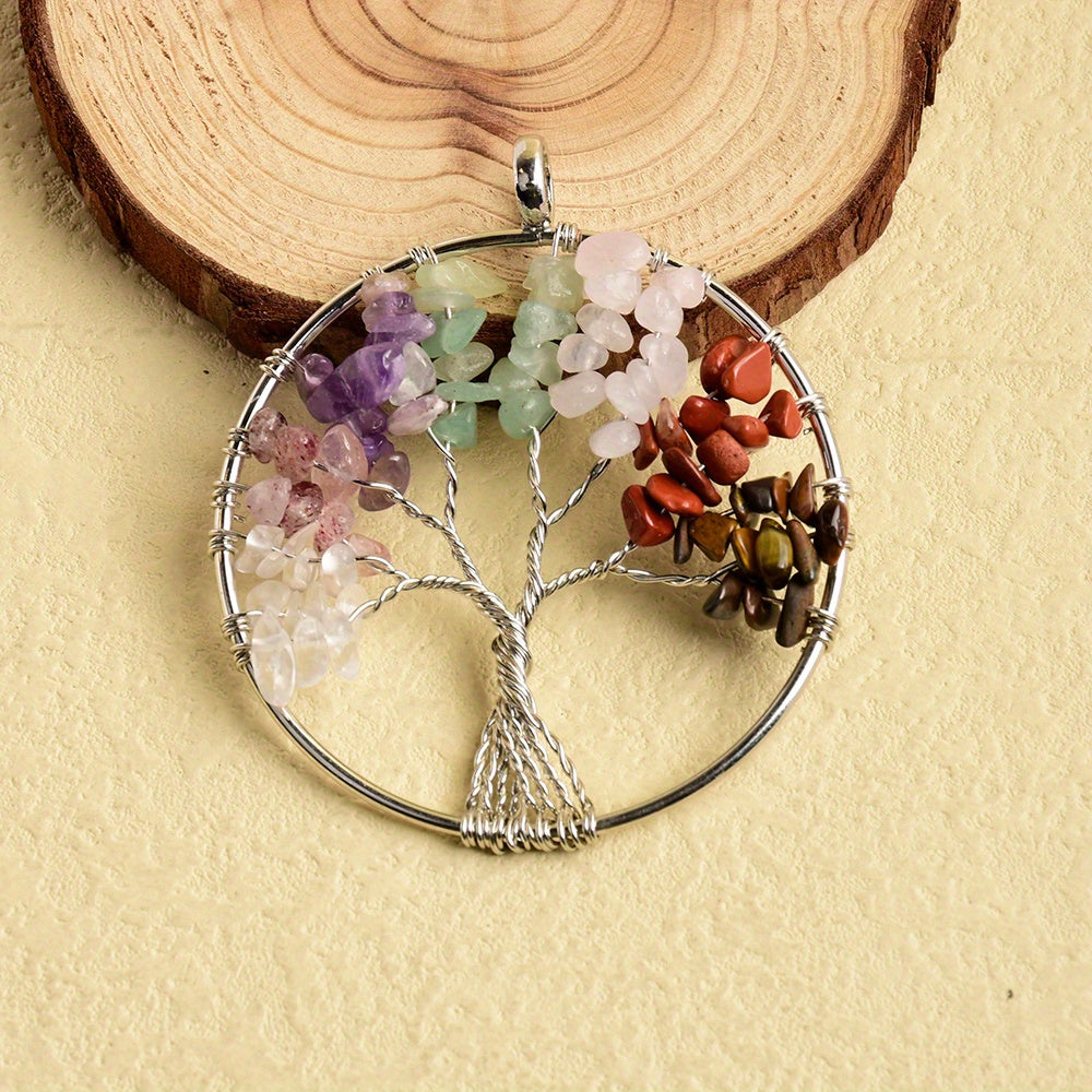 This pendant necklace features a life tree design made of natural crystal crushed stone, adding a touch of nature-inspired elegance to your look.