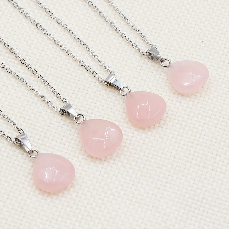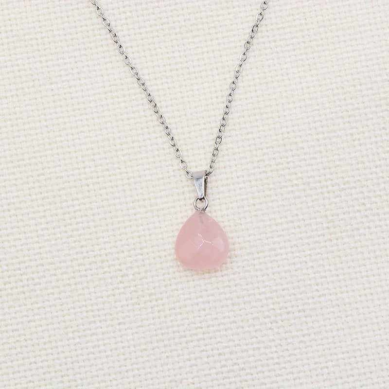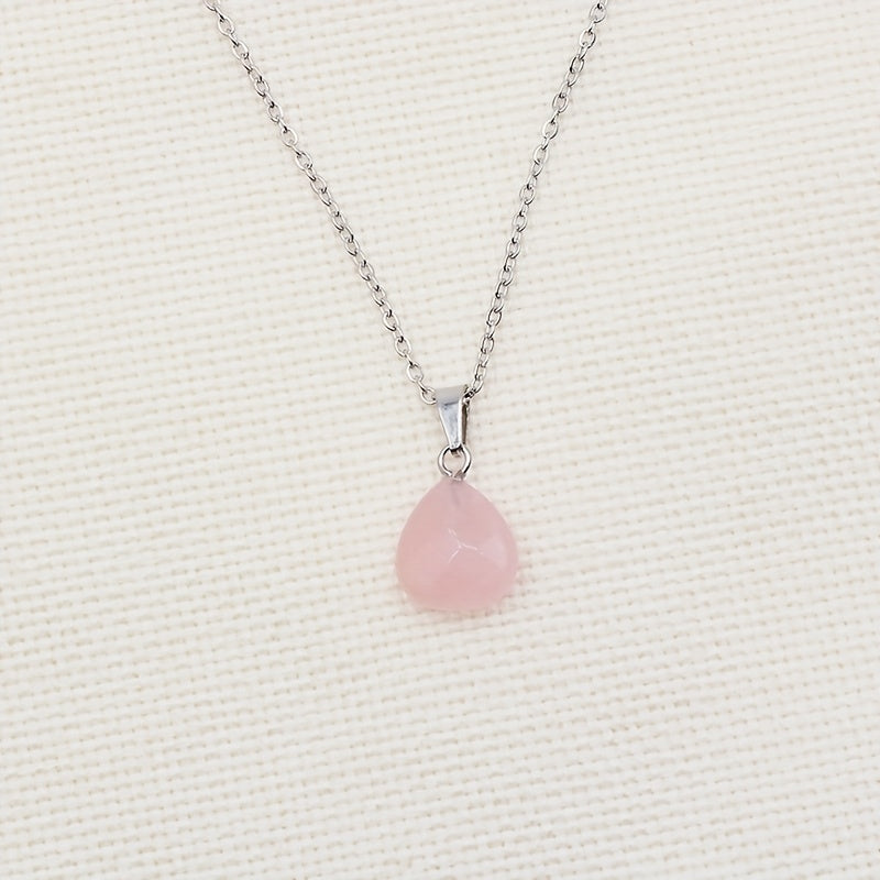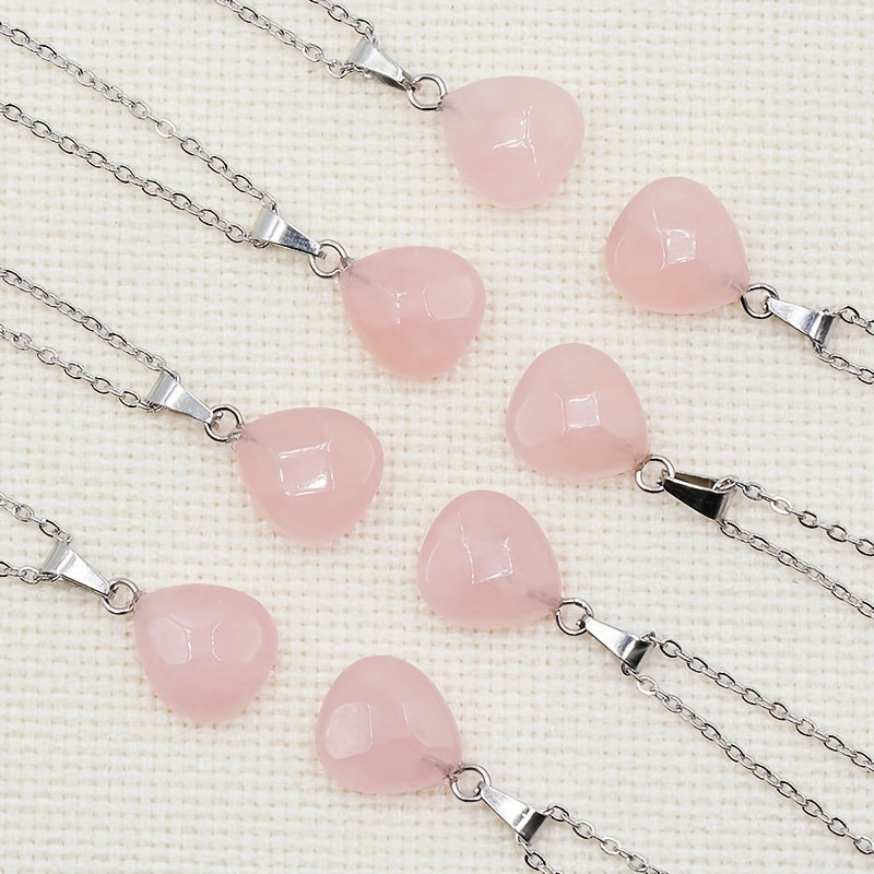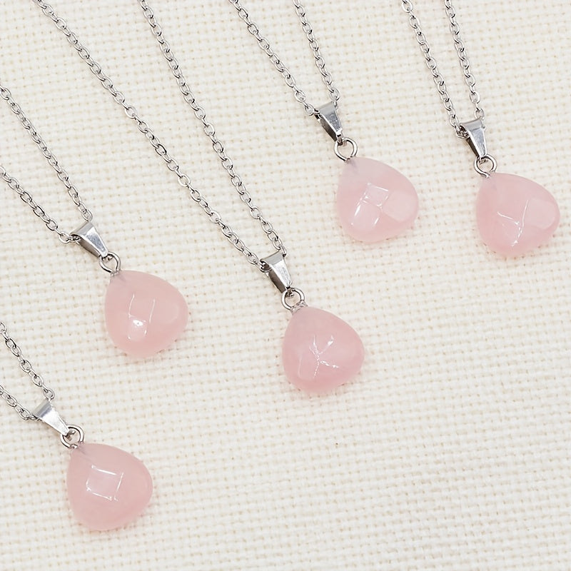Add a touch of natural beauty with this rose quartz pendant featuring a faceted water drop heart design.