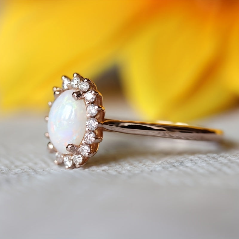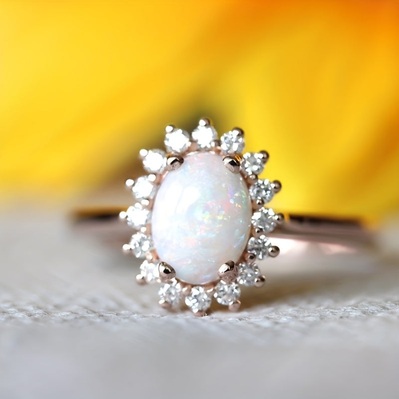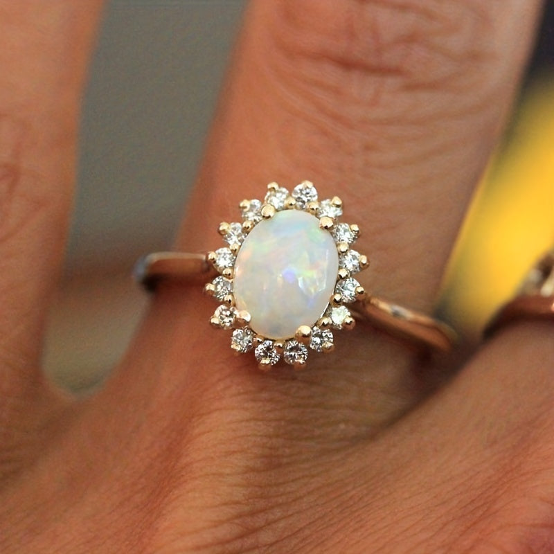 This gorgeous ring features an egg-shaped opal inlay, making it a perfect accessory for parties or everyday wear. Give this ring as a birthday or Christmas gift to your girl.
