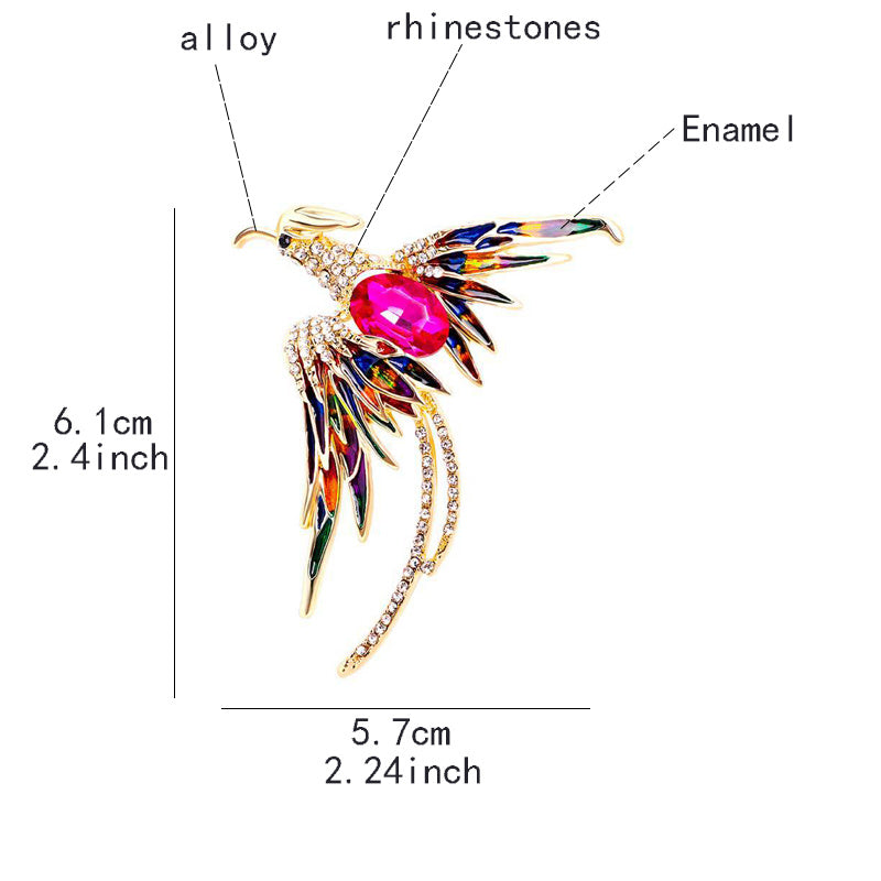 Add a touch of elegance with this stunning Rhinestone Phoenix Brooch. Featuring crystal and enamel detailing, this brooch is perfect for accessorizing your clothing.