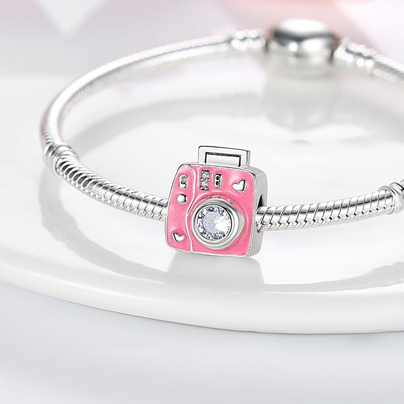 This pink camera charm pendant is perfect for adding a cute touch to your jewelry creations. Great for bracelets and other DIY projects.