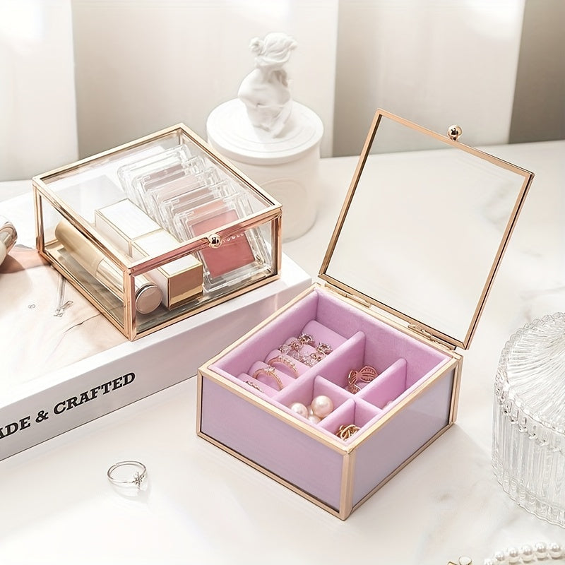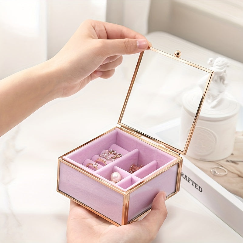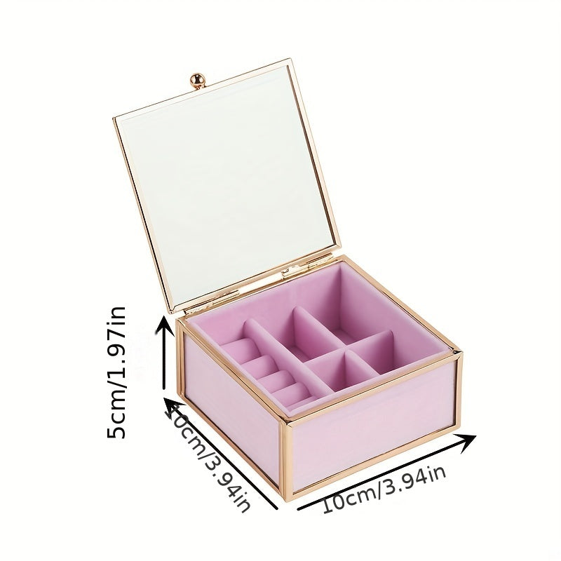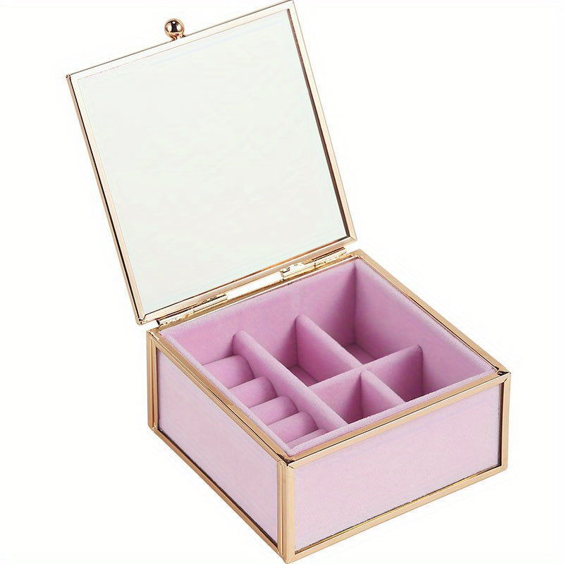 Pink Glass Lid Jewelry Storage Box for Accessories