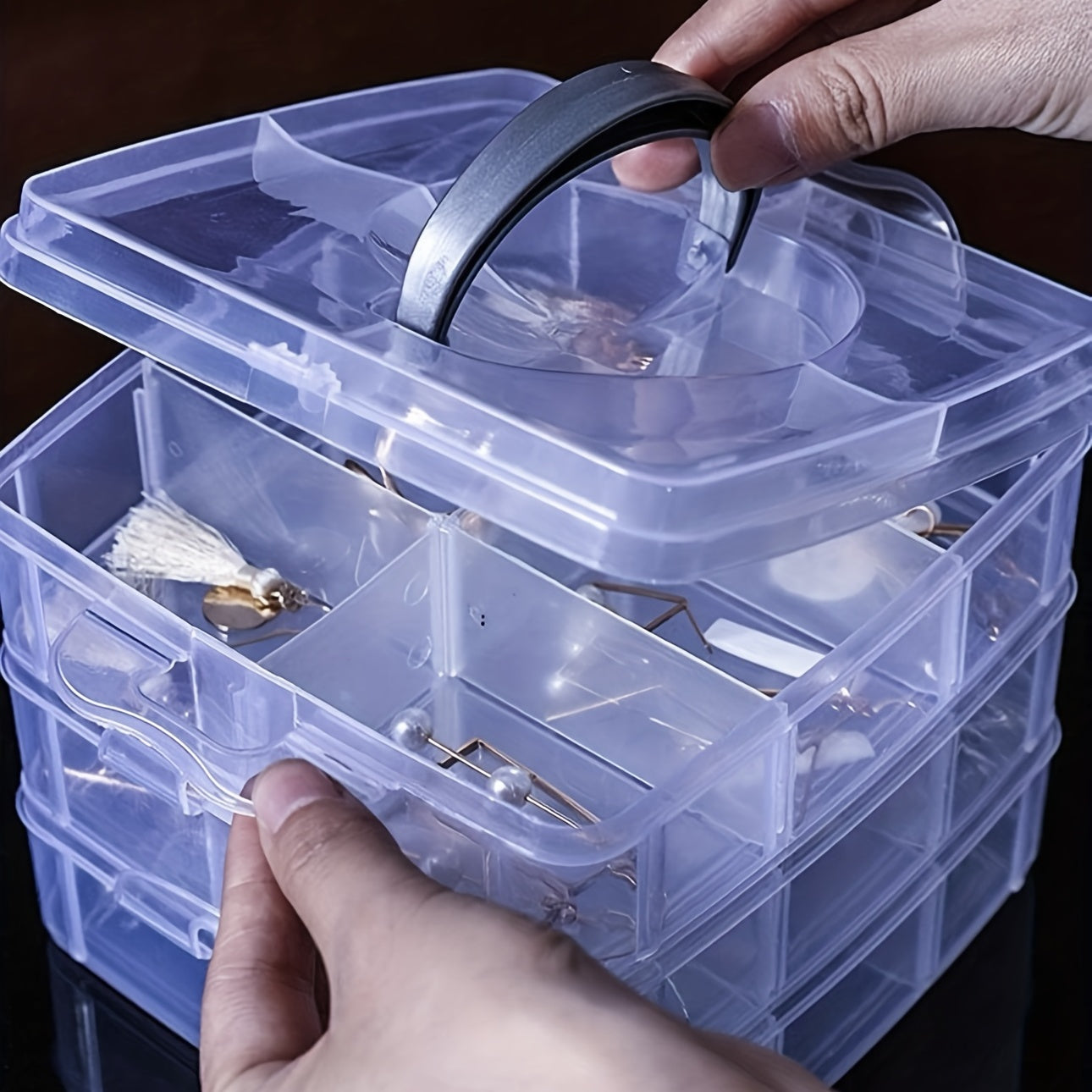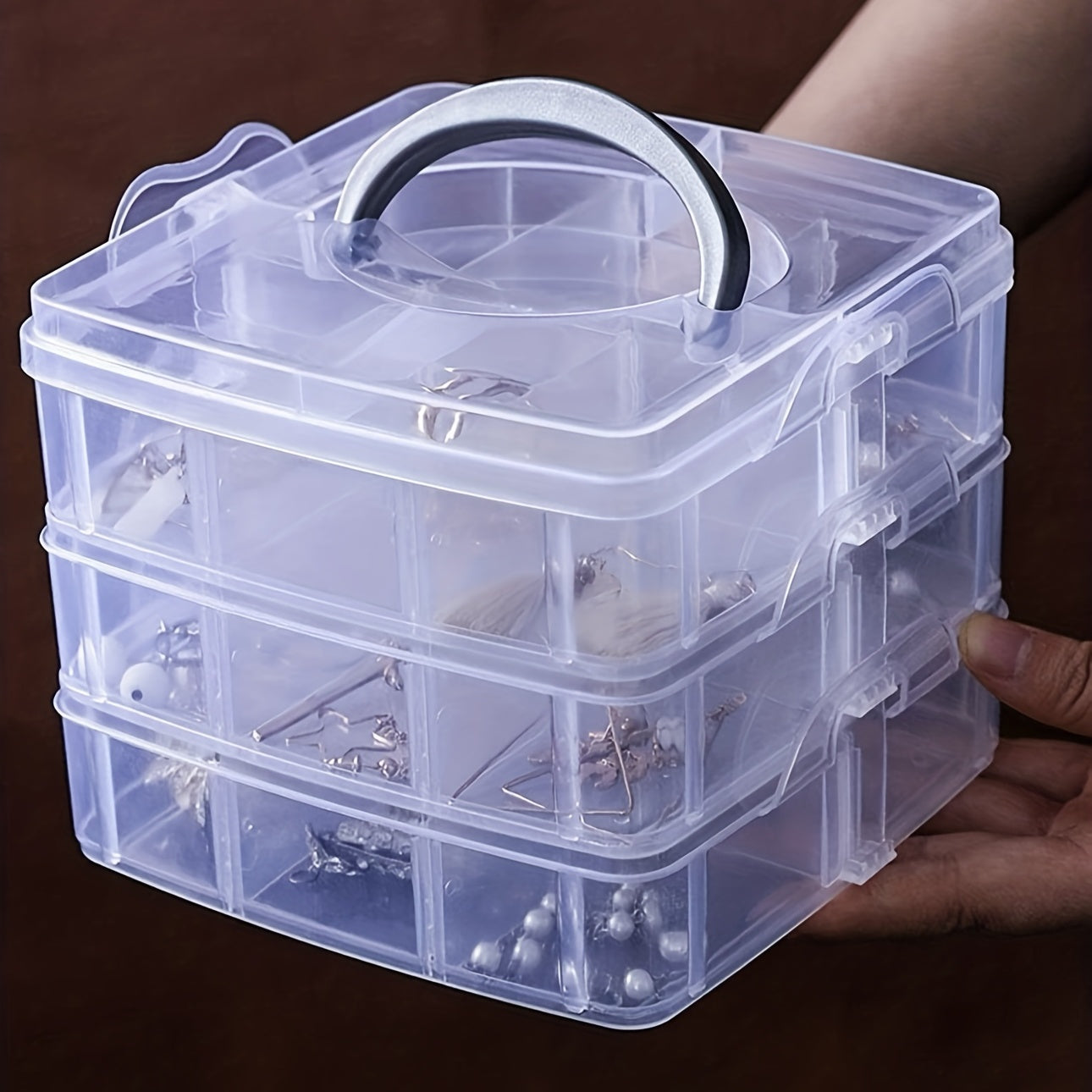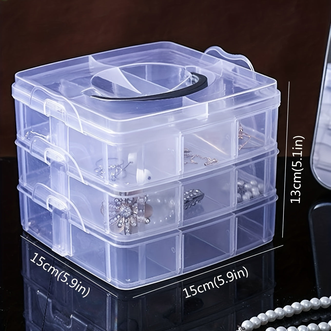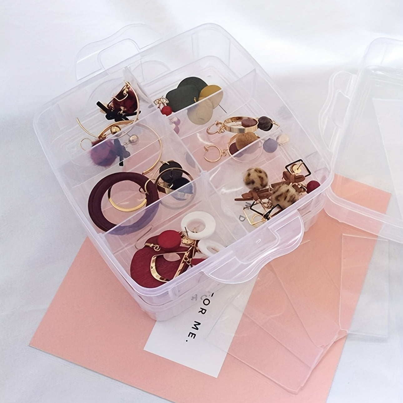 Keep your jewelry organized and safe with this minimalist grid-patterned plastic jewelry box. Perfect for travel or everyday storage.