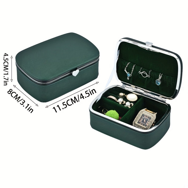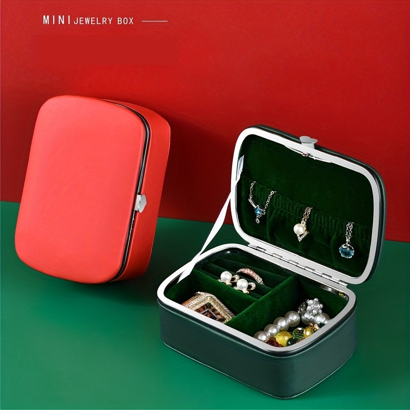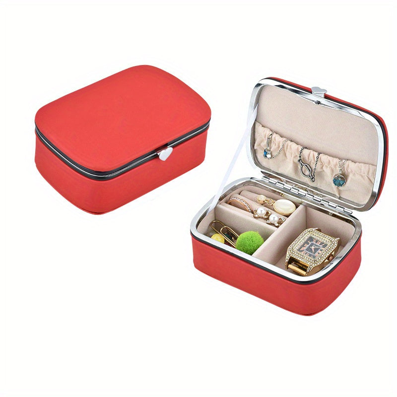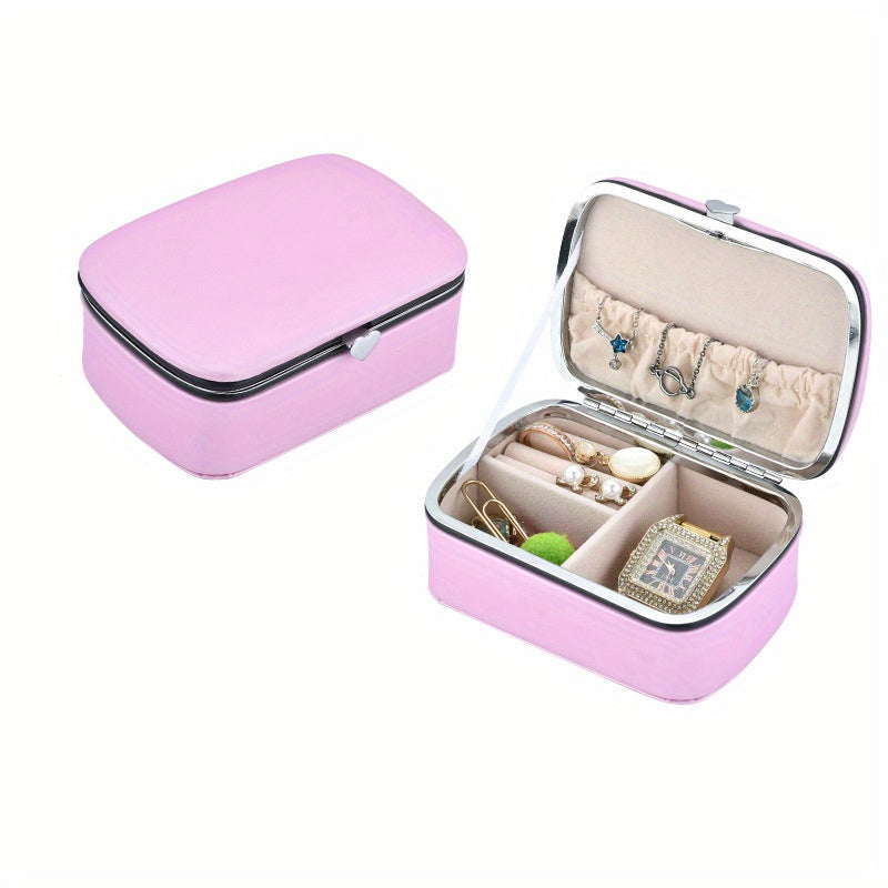 Keep your jewelry organized while traveling or at home with this compact and stylish jewelry box. Made of high-quality PU leather, it features multiple compartments for earrings, rings, and other small accessories.