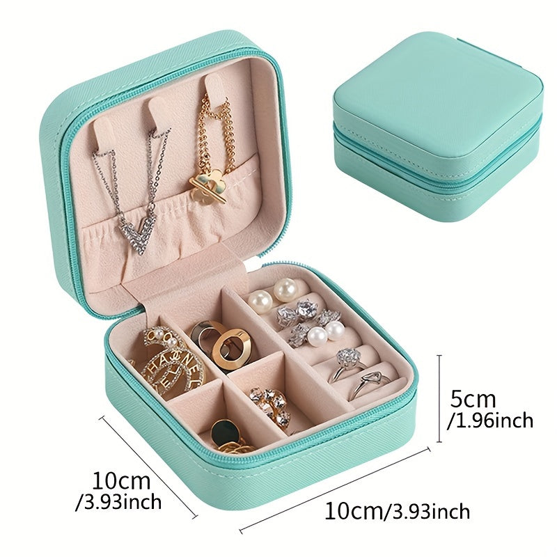 Keep your jewelry safe and organized while on the go with this stylish jewelry box. Made with high-quality leather and a secure zipper closure.