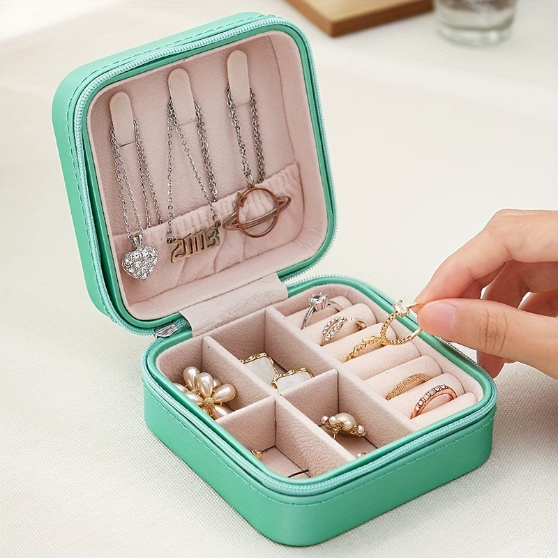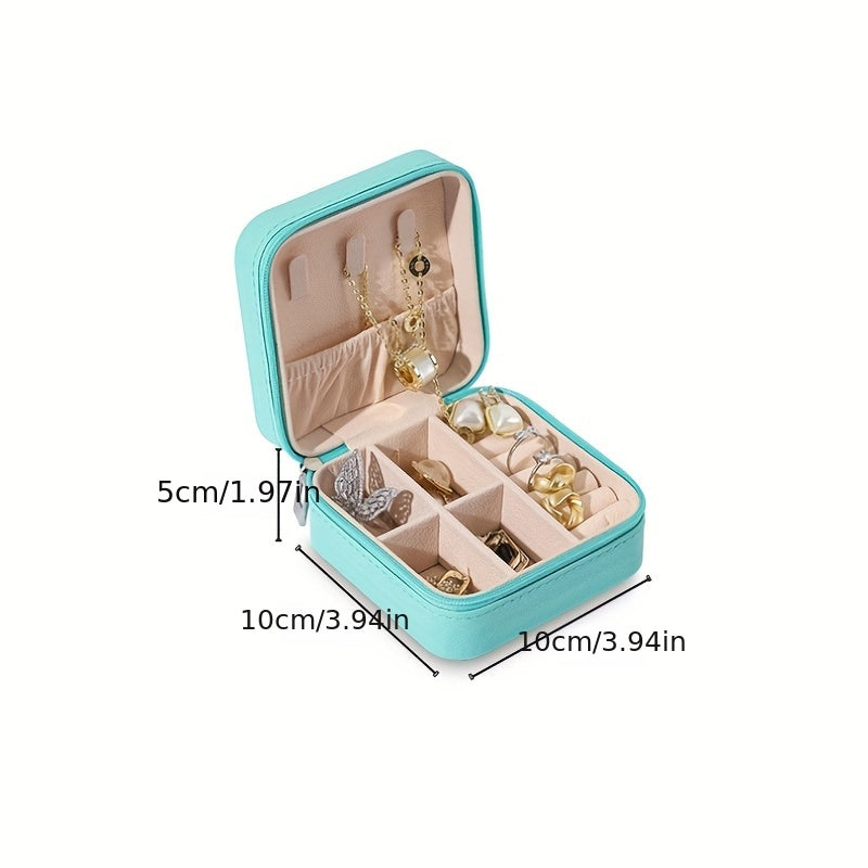 Keep your jewelry organized and safe while traveling with this portable storage box. It features compartments for earrings, necklaces, rings, and more.
