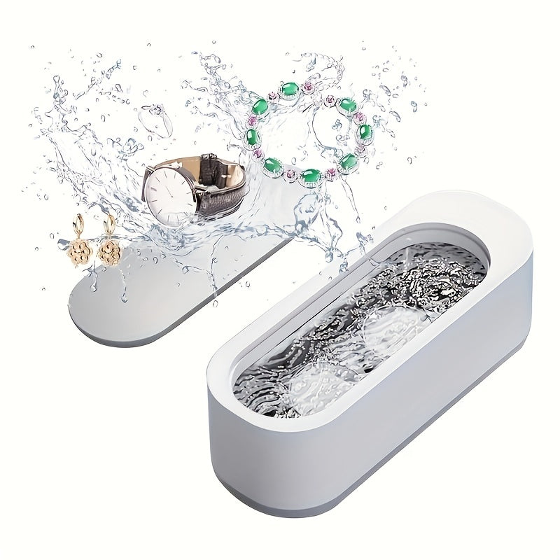 Keep your jewelry, watches, and glasses sparkling with this portable ultrasonic cleaner featuring a razor for precision cleaning.