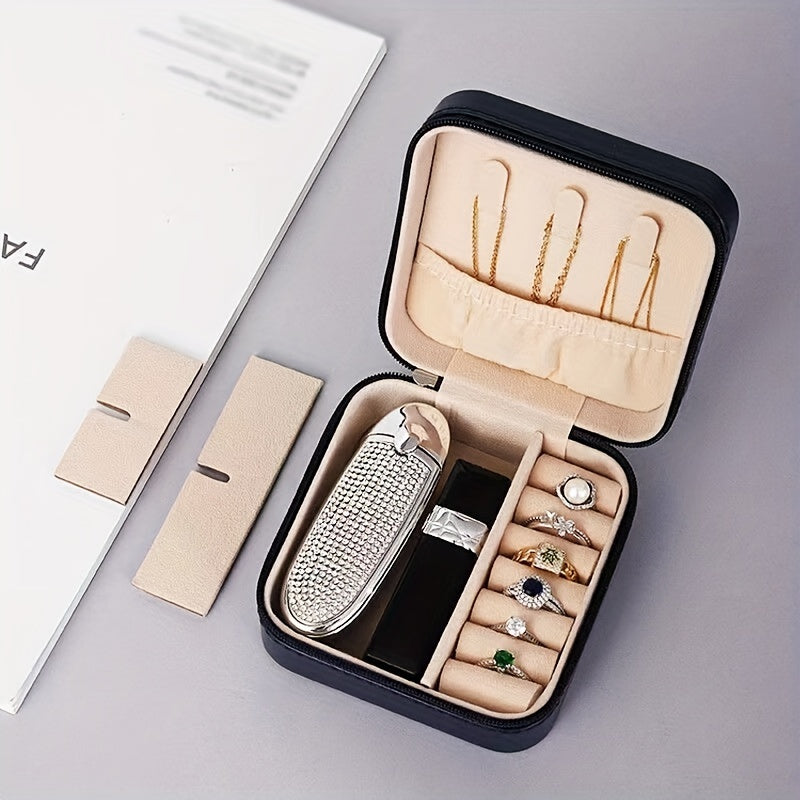 Keep your necklaces, earrings, rings, and bracelets safe and organized with this compact storage box. Ideal for travel or everyday use.