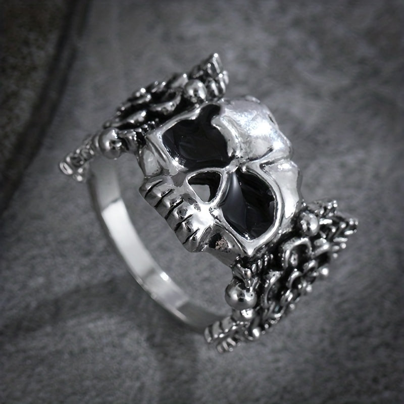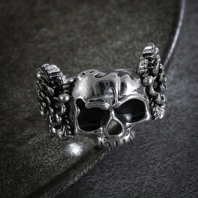 Embrace the dark side with this skull totem ring, perfect for Halloween or a bold statement piece. Made for those who dare to rock a gothic demon skull head ring.