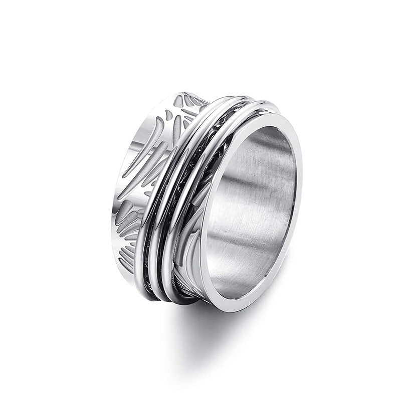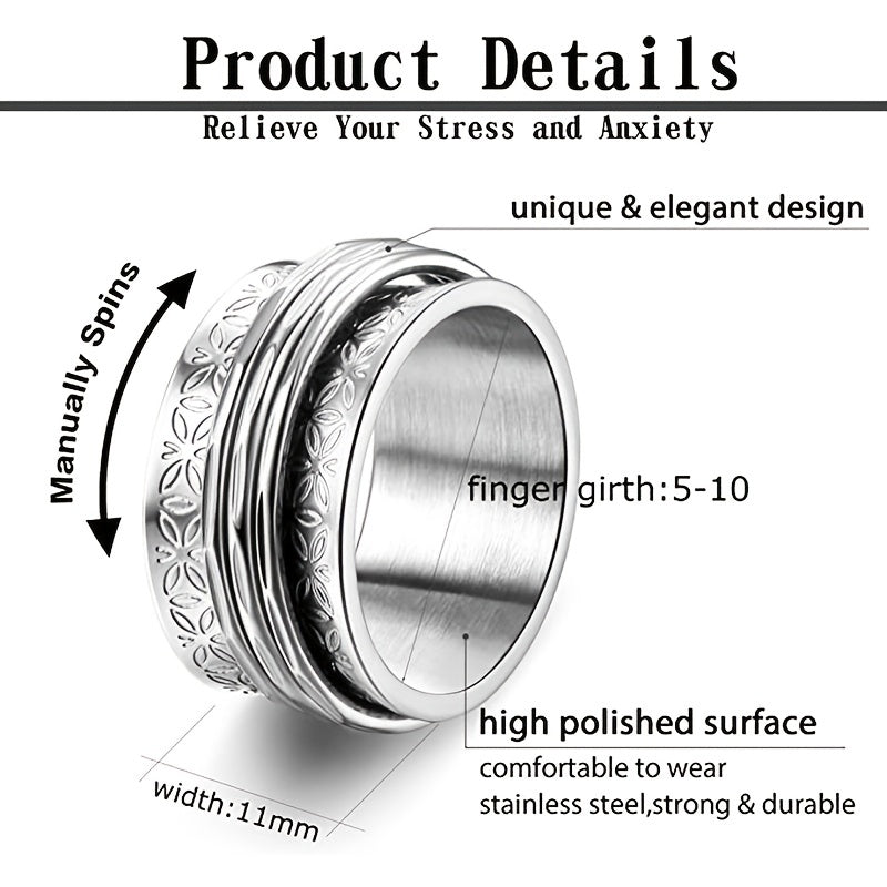 Get this rotating anti-stress ring made of stainless steel for a unique and stylish look. Ideal for weddings, parties, and everyday wear.
