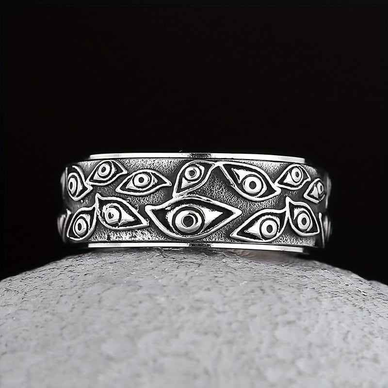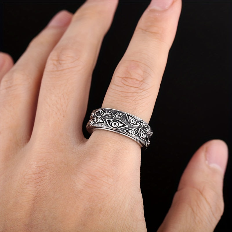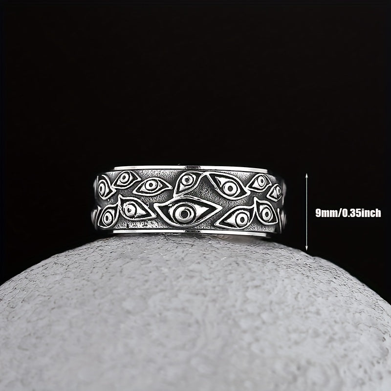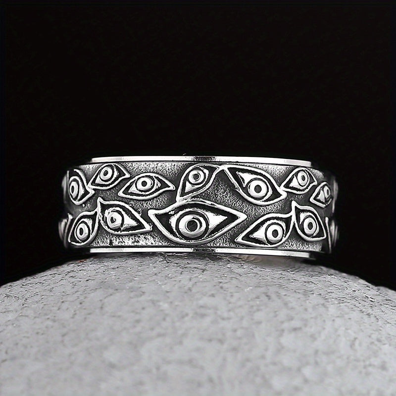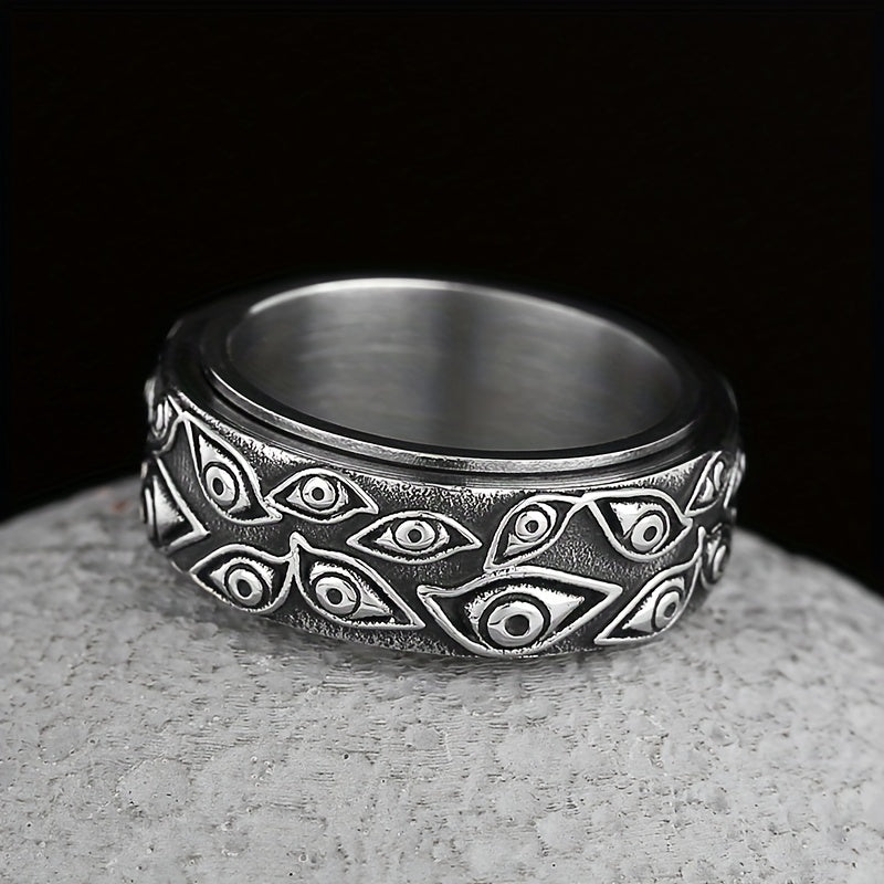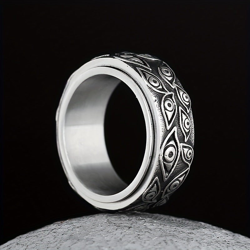 This retro men's ring features a mysterious eye design and is made of durable stainless steel. The turnable feature adds a touch of uniqueness and can serve as a stress-reliever. A stylish accessory for men with a taste for unconventional jewelry.