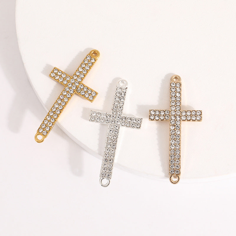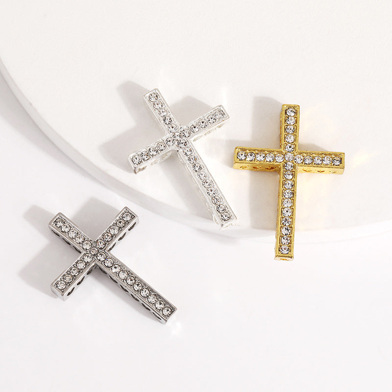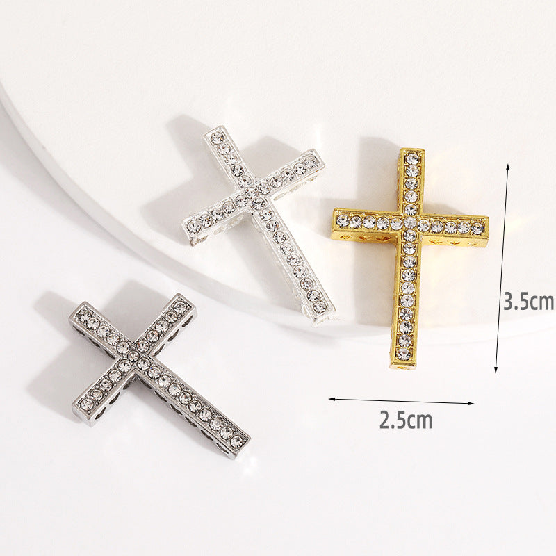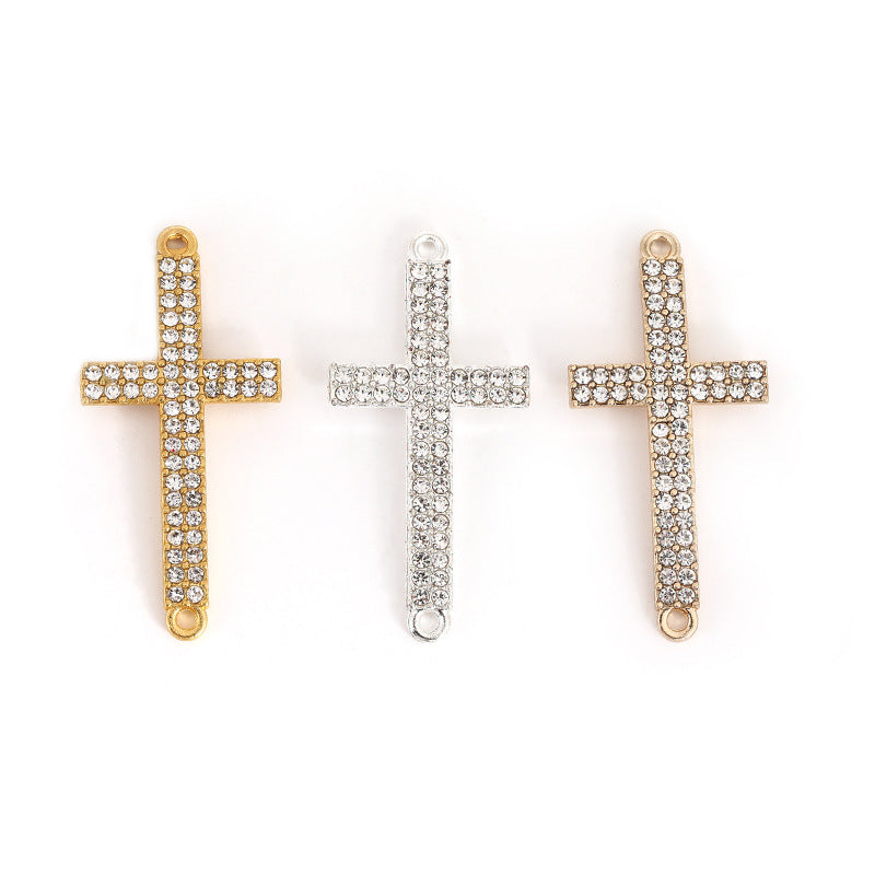 Add a touch of glam to your look with this rhinestone-studded alloy cross pendant. Create unique bracelets, necklaces, or handwear with this versatile accessory.