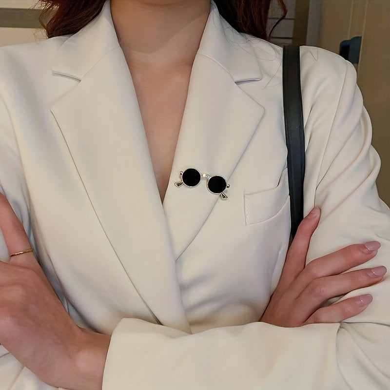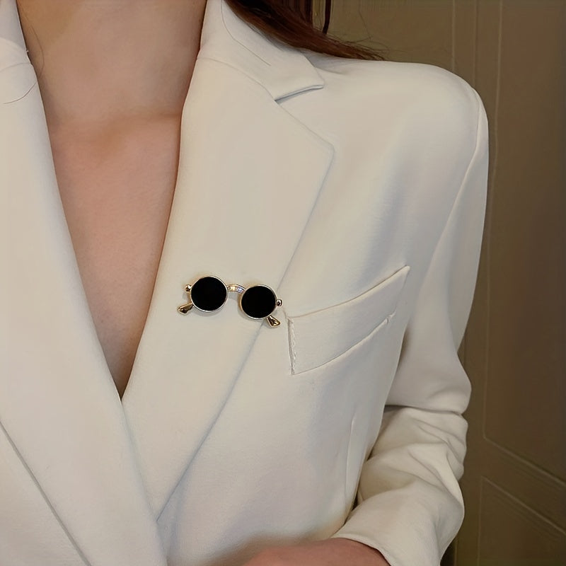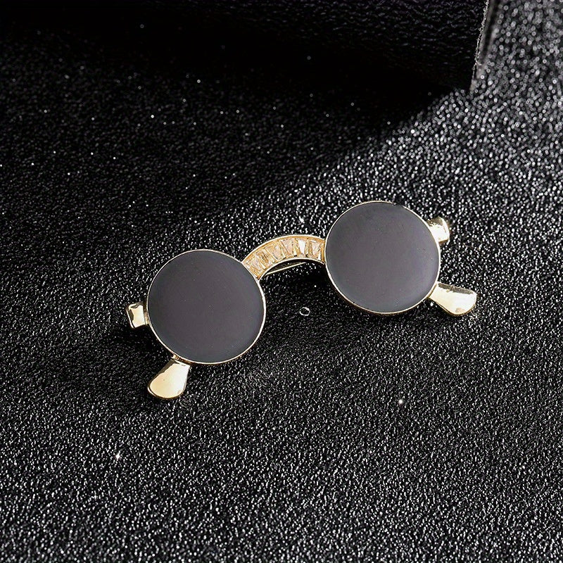 Add a touch of humor and style to your outfit with this rhinestone glasses brooch. Perfect for suits and various clothing items.