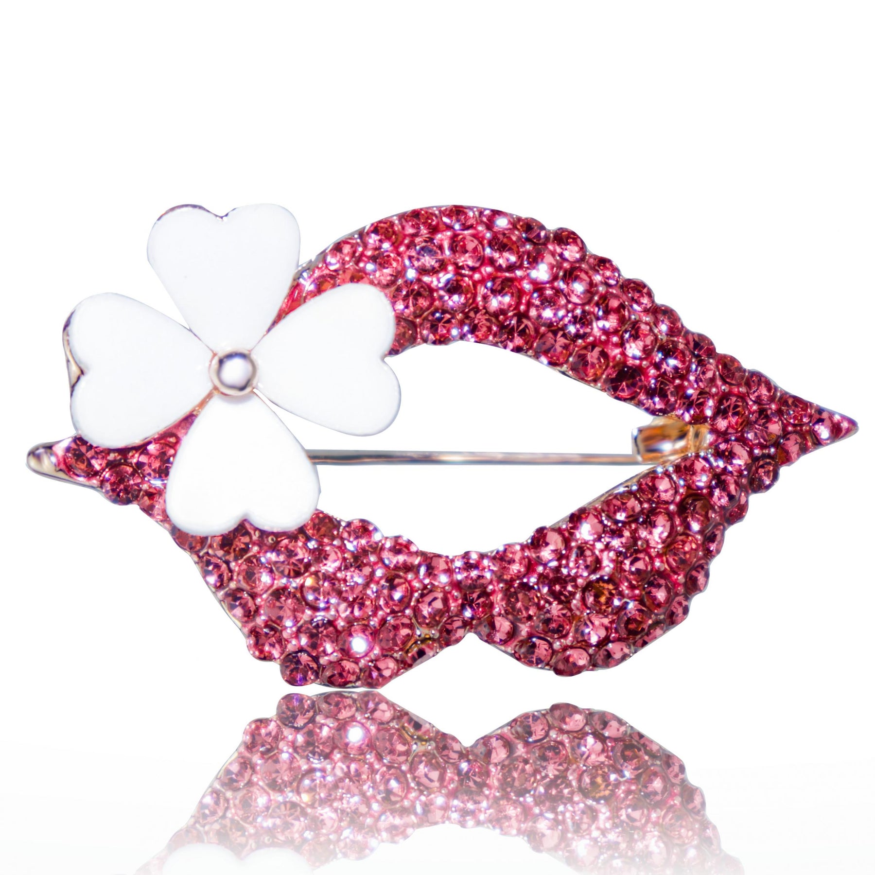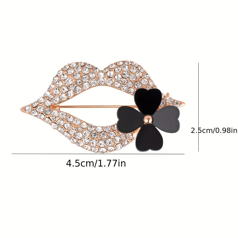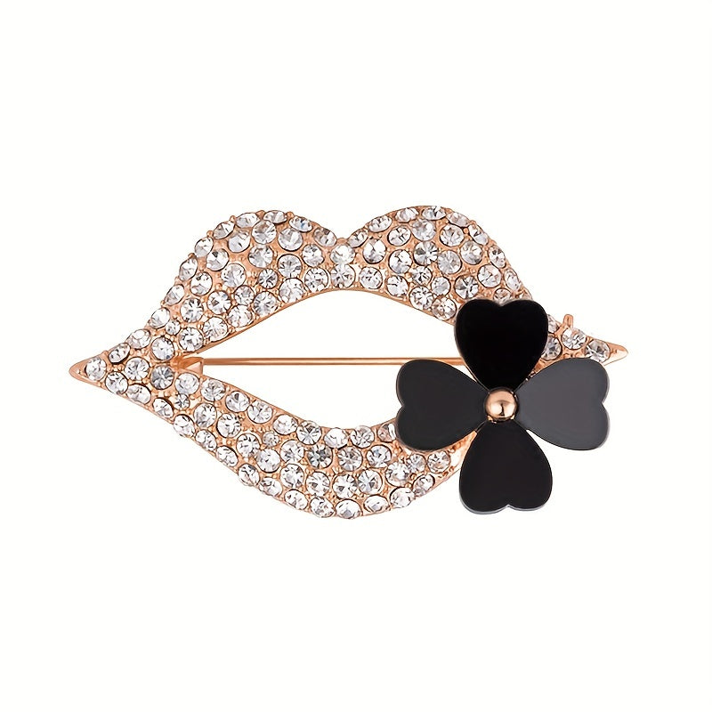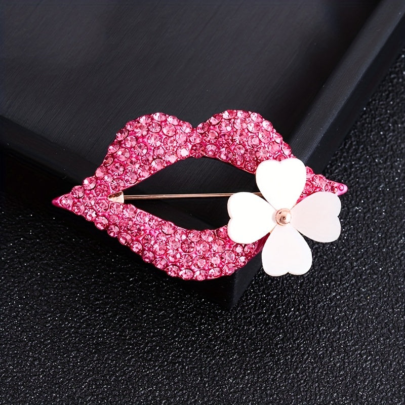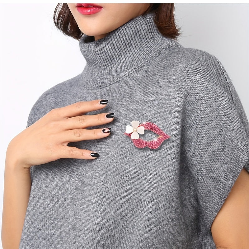 Add a touch of sparkle to your outfit with this rhinestone lips brooch pin featuring a flower skirt. A fashionable accessory that stands out.