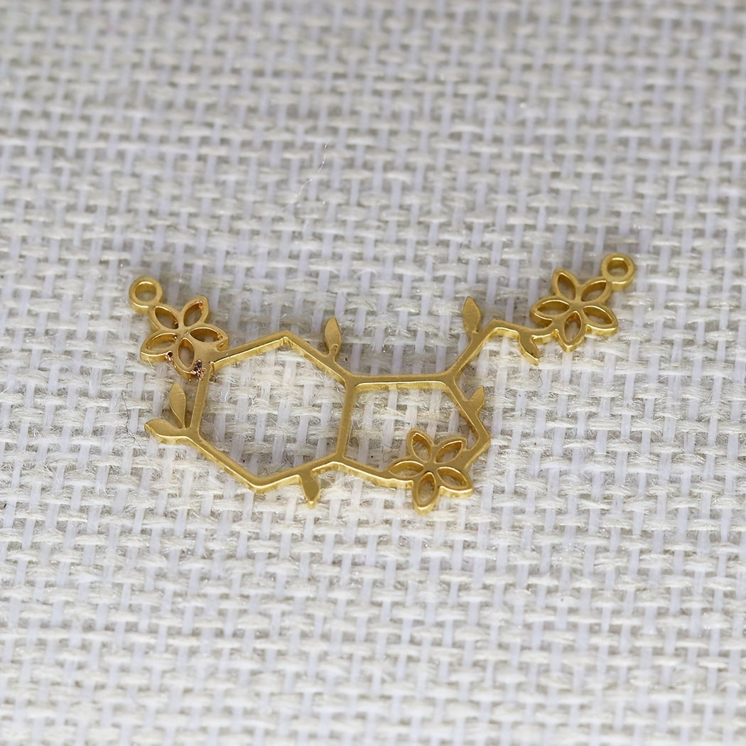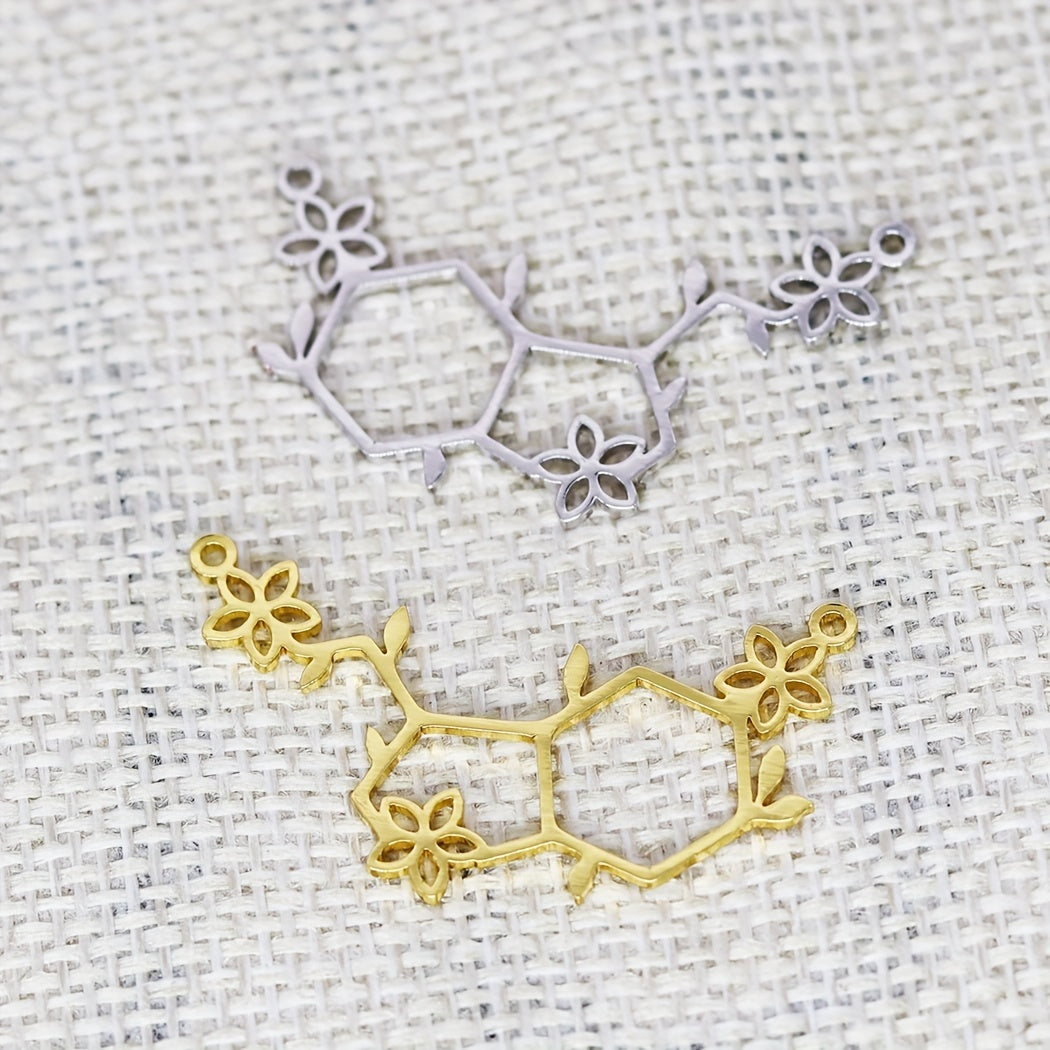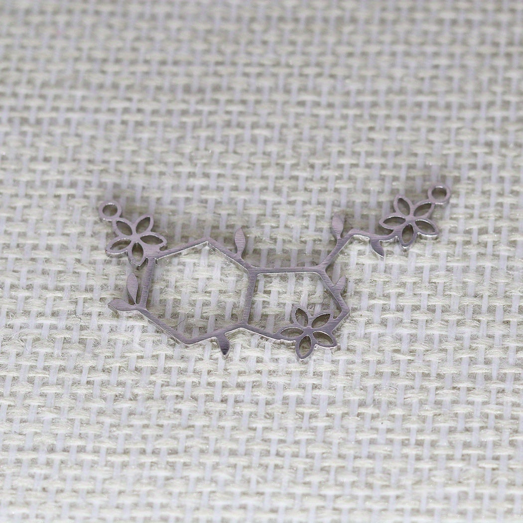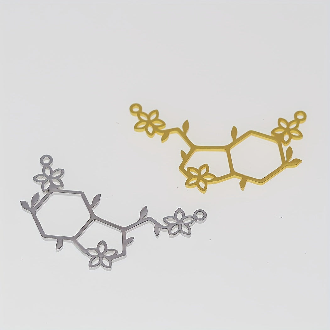 This stainless steel charm pendant features a serotonin molecule design with a delicate flower charm. Ideal for necklace, bracelets, and various jewelry crafts making.