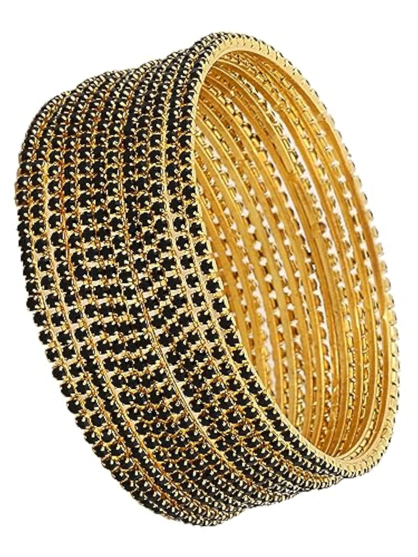 Beautiful set of 12 black plated bangles that add a touch of traditional elegance to any outfit.