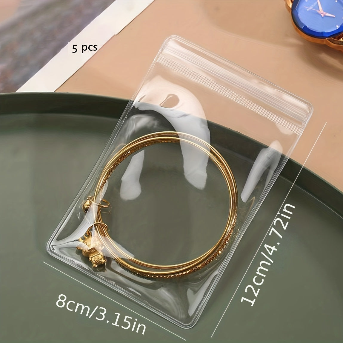 Keep your jewelry organized and safe with this set of 5 storage bags. Perfect for traveling or storing at home.