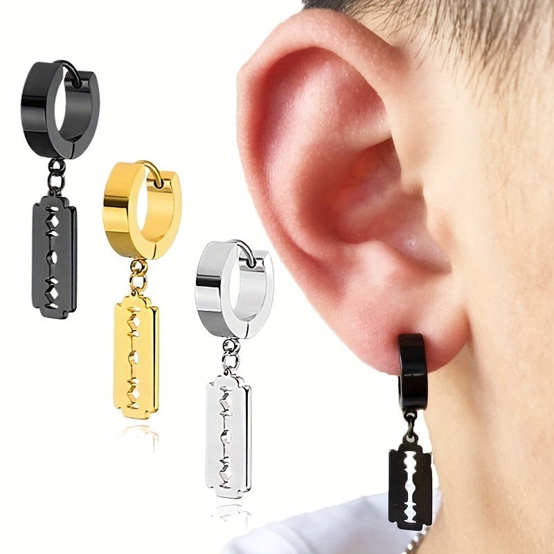 Upgrade your style with these silvery golden hoop earrings designed for men and women. Made of stainless steel, these dangle hoop earrings are perfect for any piercing.