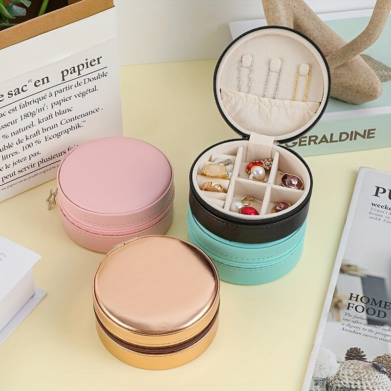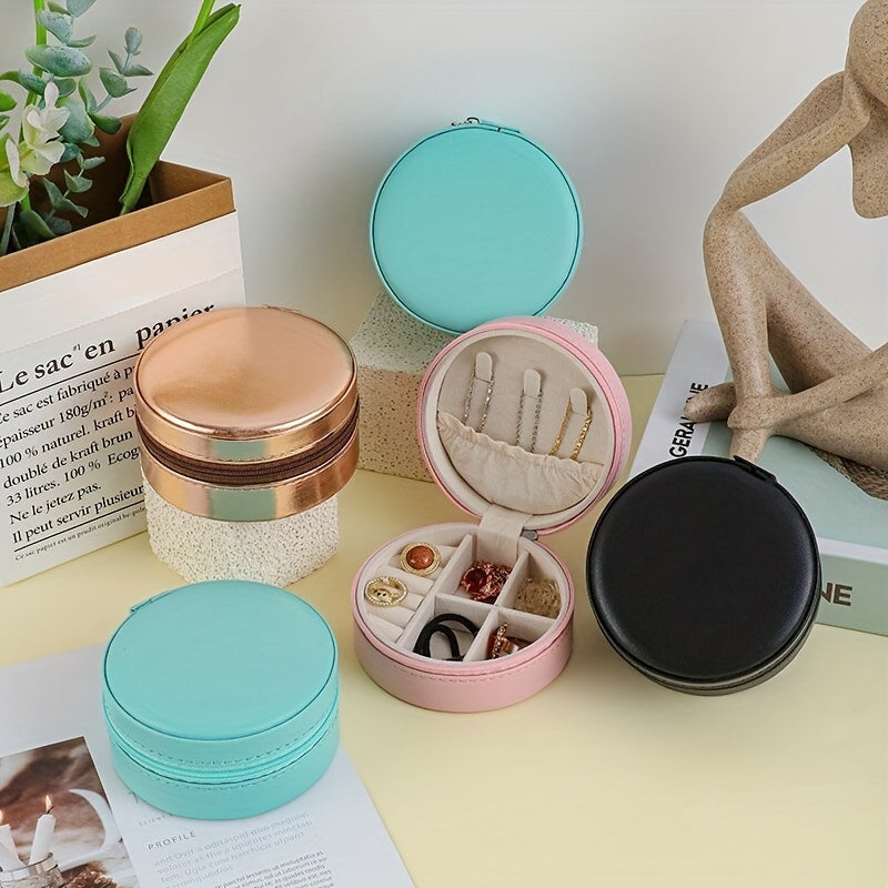 Solid Round Jewelry Storage Box, Travel Case, Ring Necklace Organizer