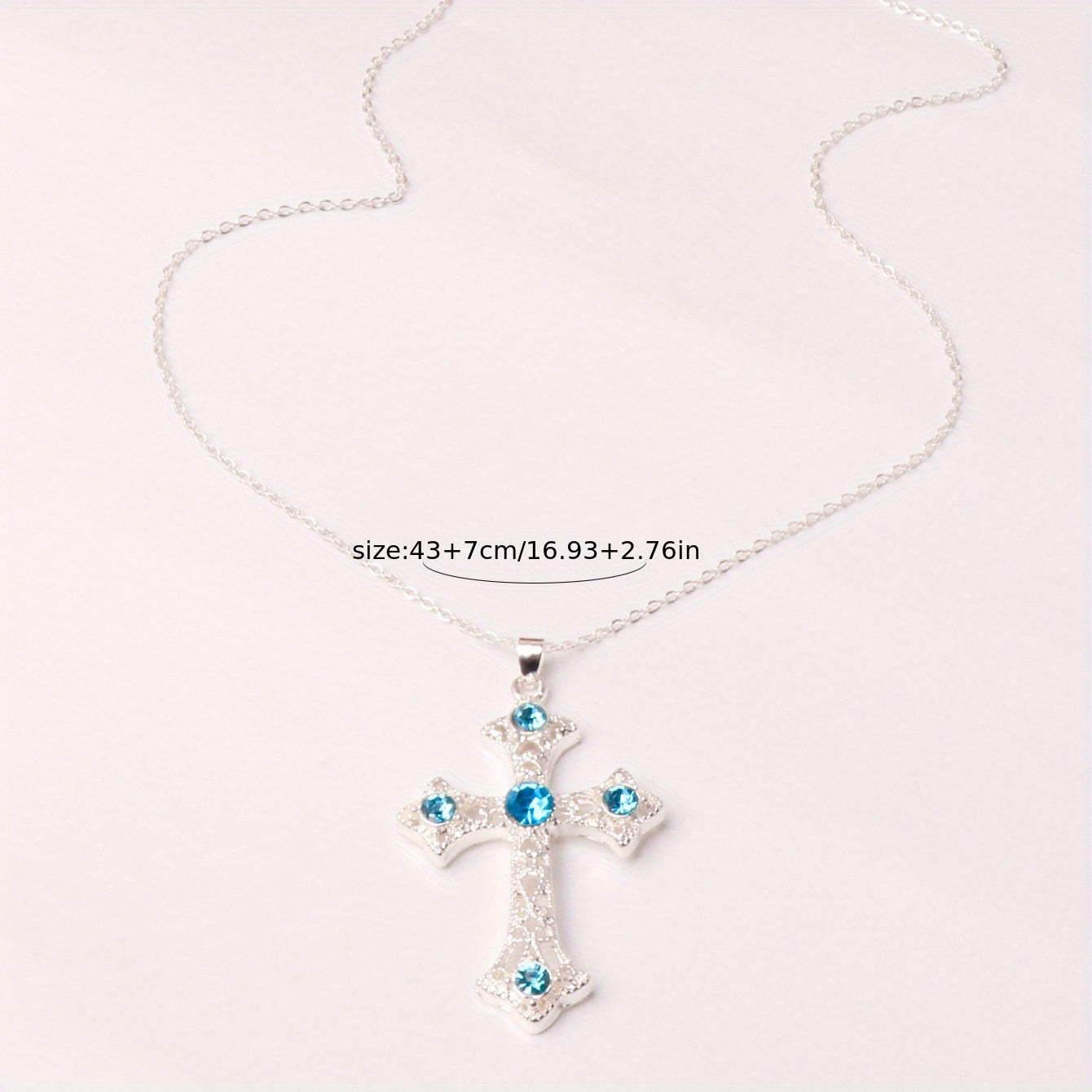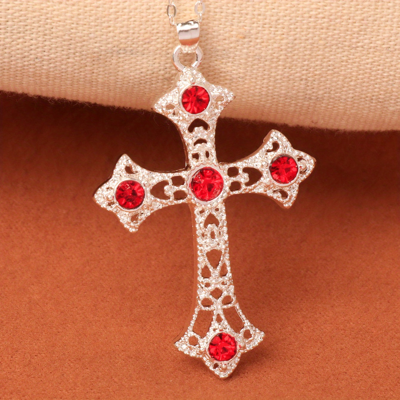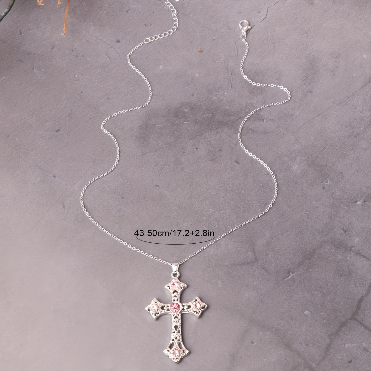Sparkle Pink Cross Pendant Necklace Crystal Silver Plated Neck Jewelry