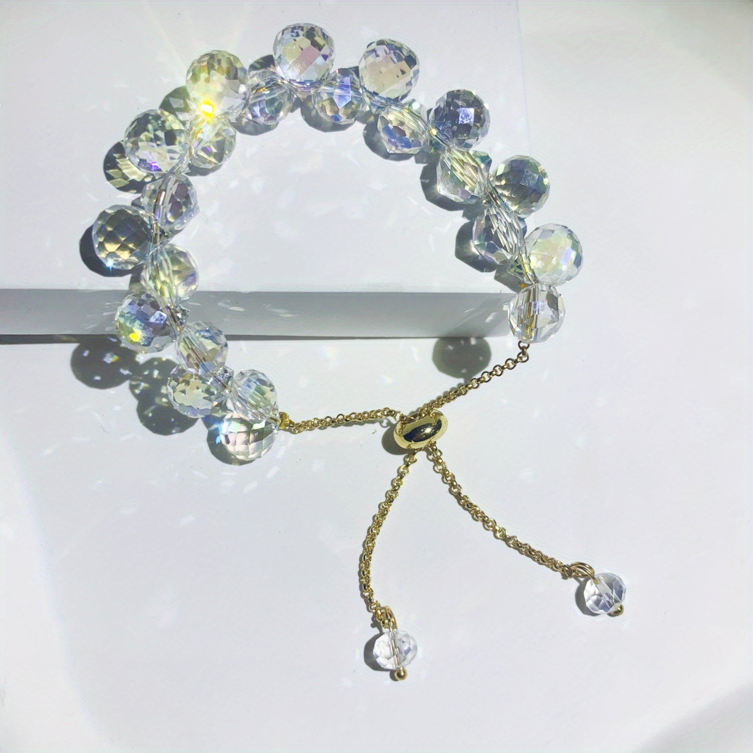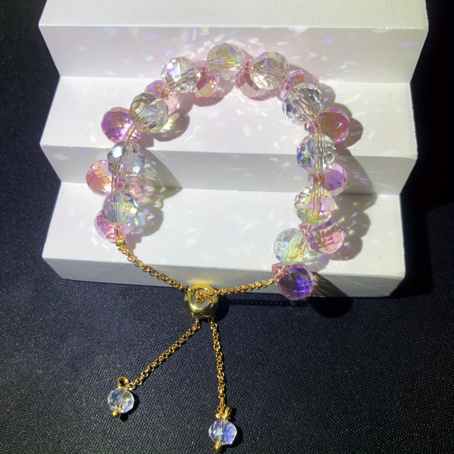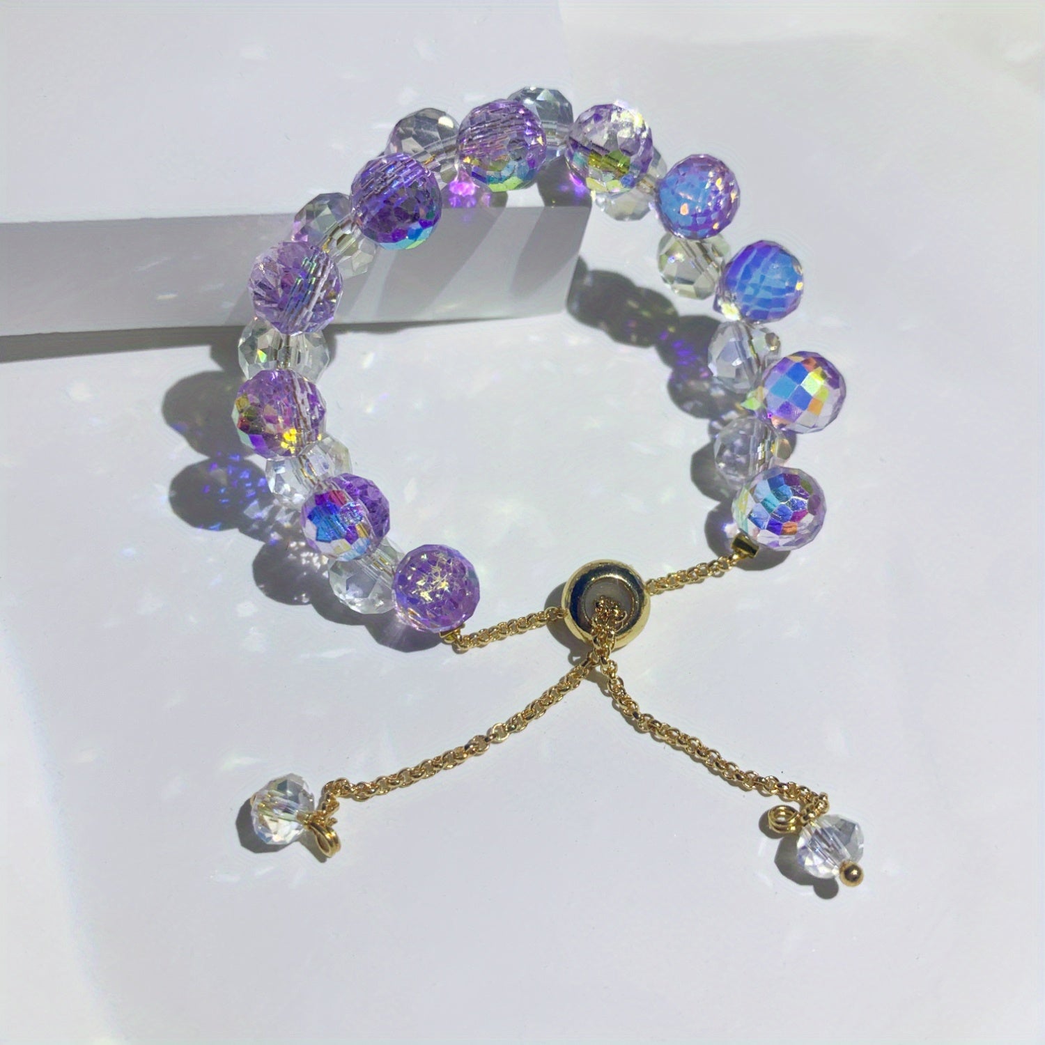 This bracelet features sparkling crystal beads that add a touch of elegance and style. Perfect for girls who love a bit of sparkle!