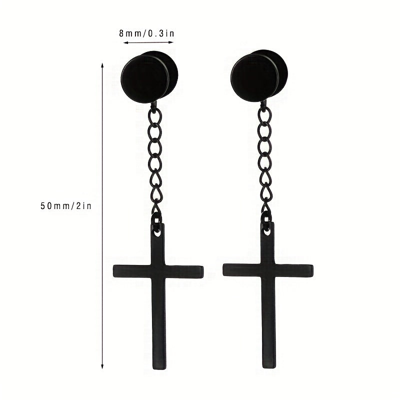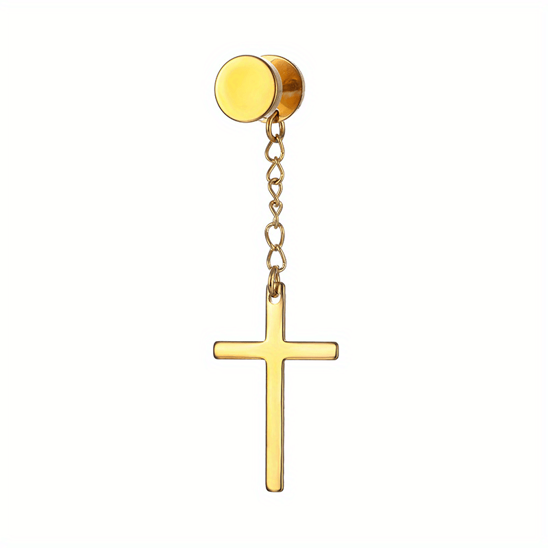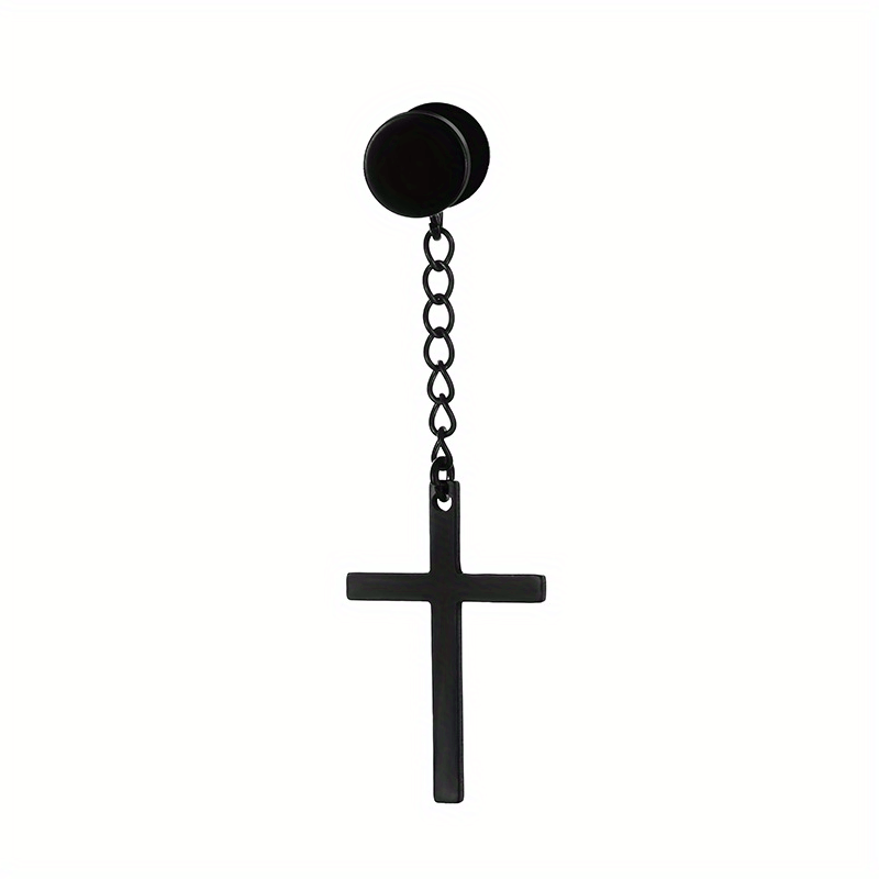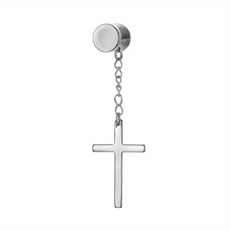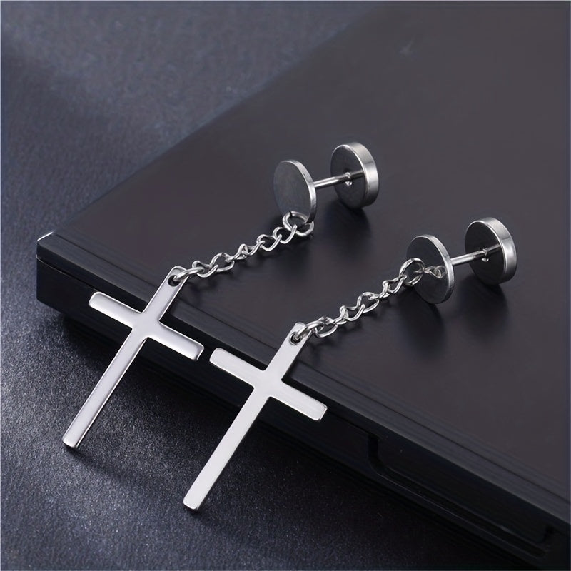 Enhance your style with these handsome temperament earrings featuring a stainless steel cross and round alloy ear buckle design.
