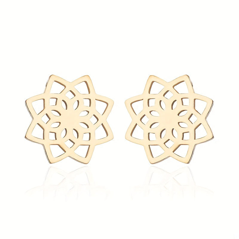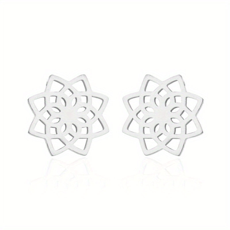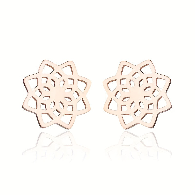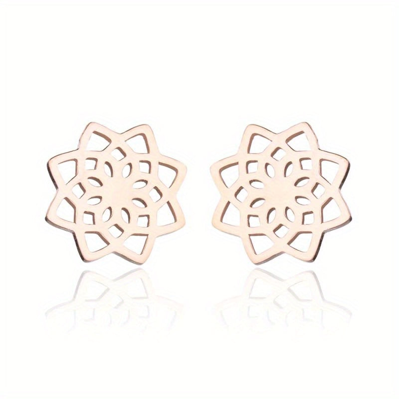 Explore the elegance with these stainless steel hollowed out flower stud earrings and lovely temperament stud earrings.