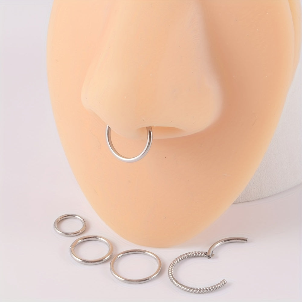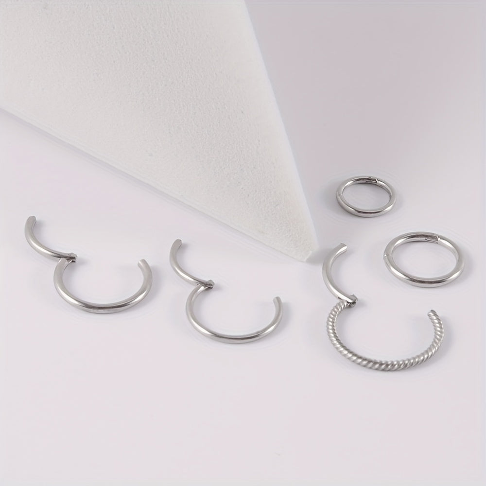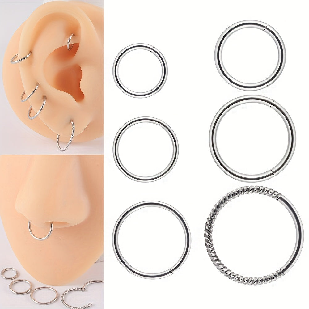 Stainless Steel Hinged Segment Ring Earrings Septum Clicker Nose Ring
