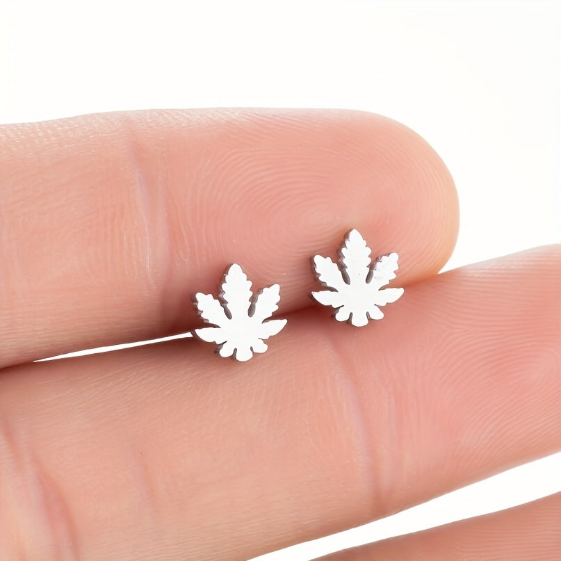These stainless steel plant leaf earrings are designed in a niche leaf shape perfect for men. Add a touch of nature-inspired style to your look.