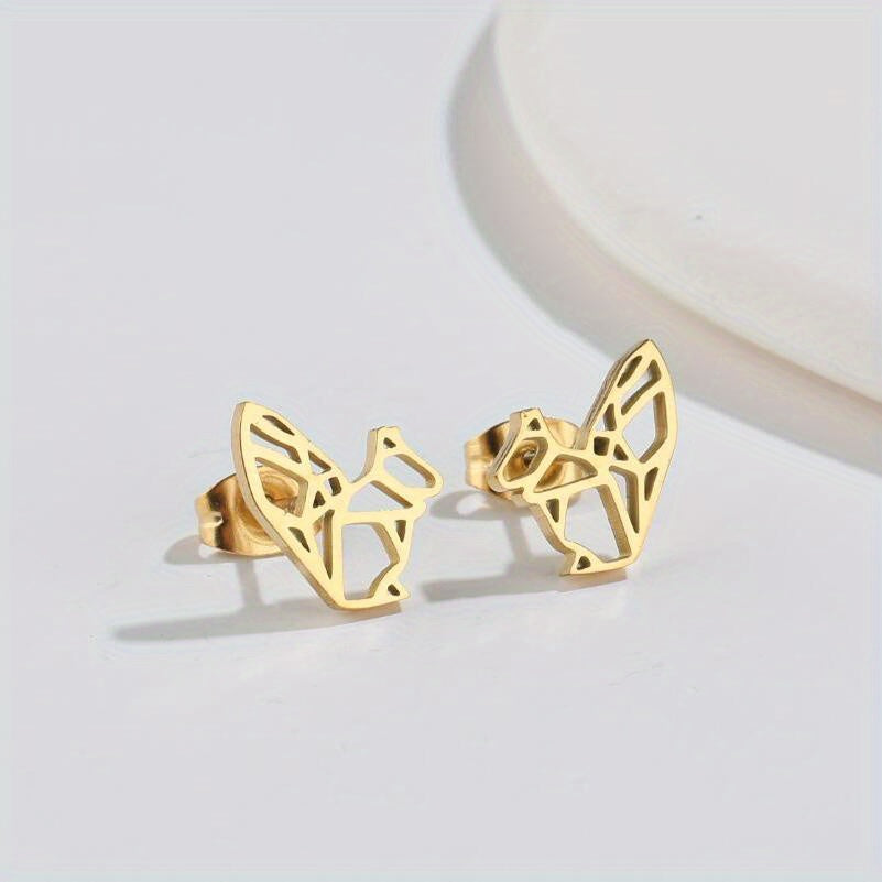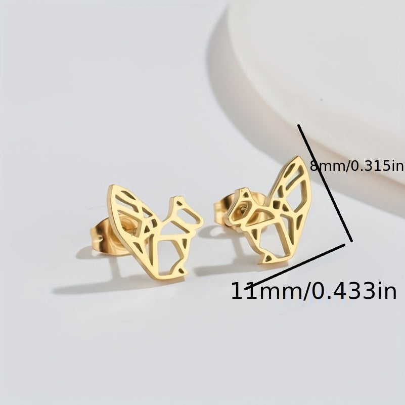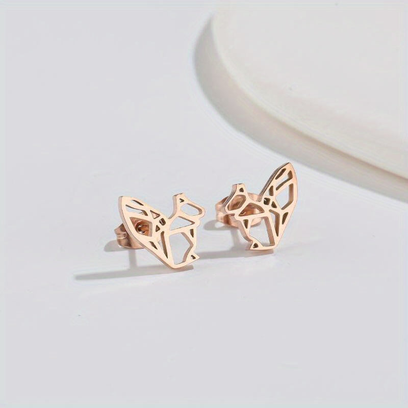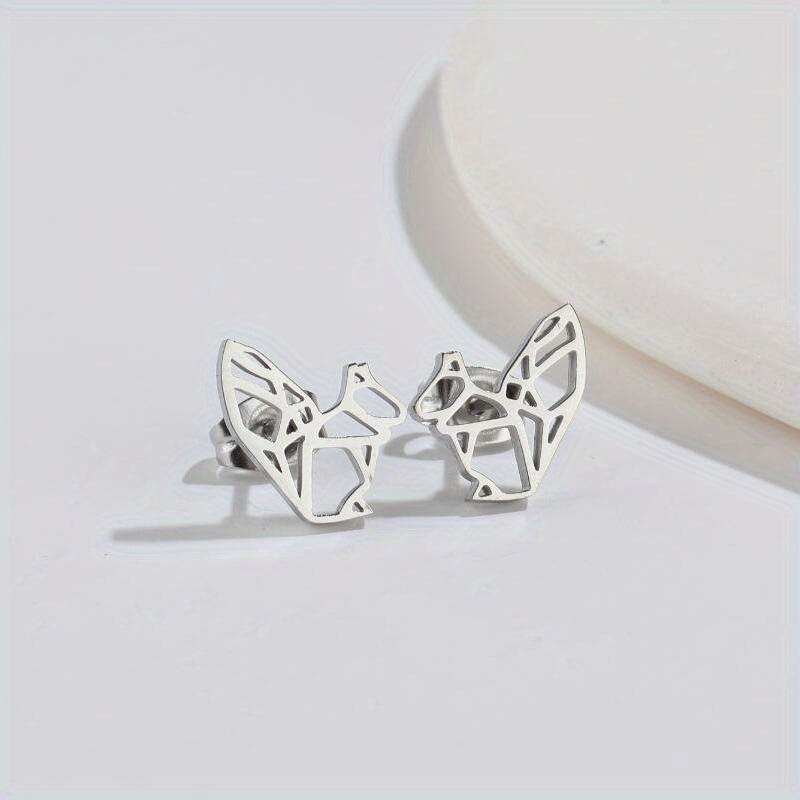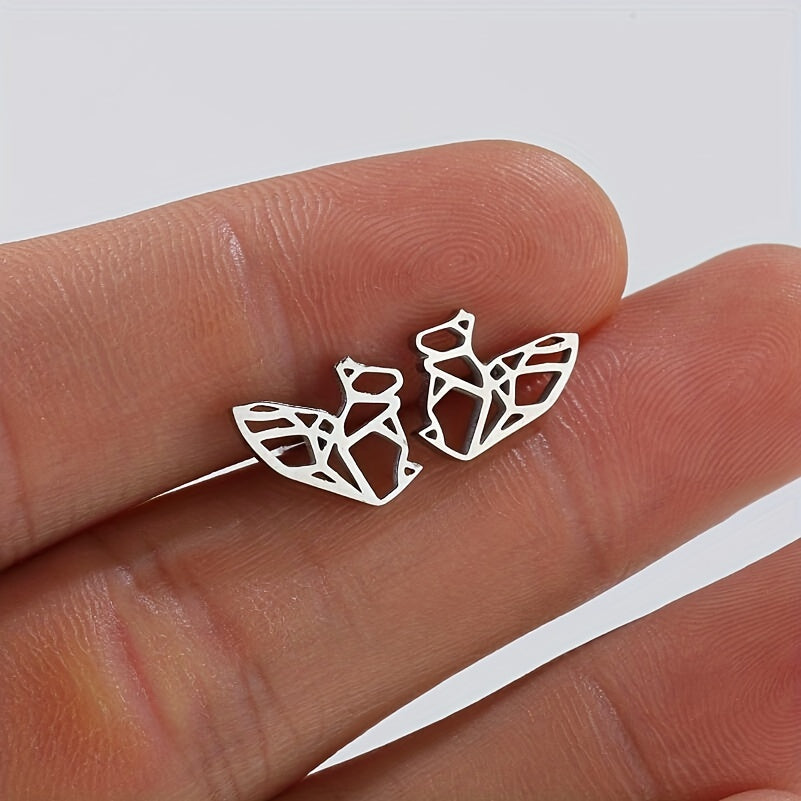 These mini stainless steel earrings feature a hollowed out origami animal design, perfect for adding personality to any outfit.