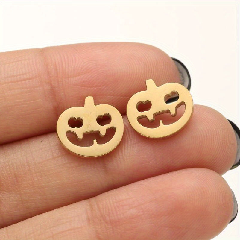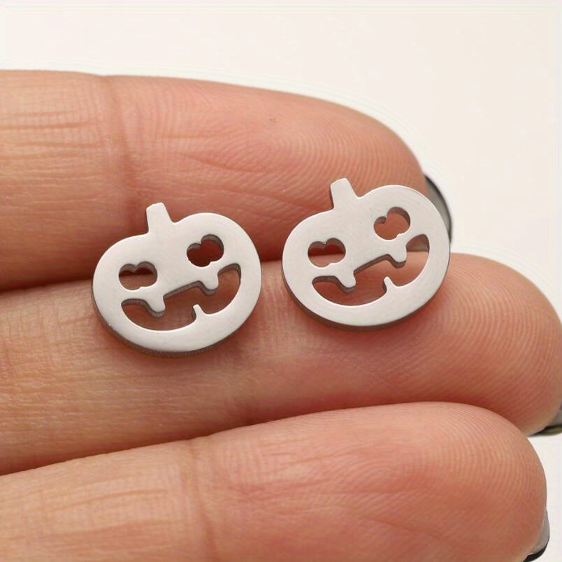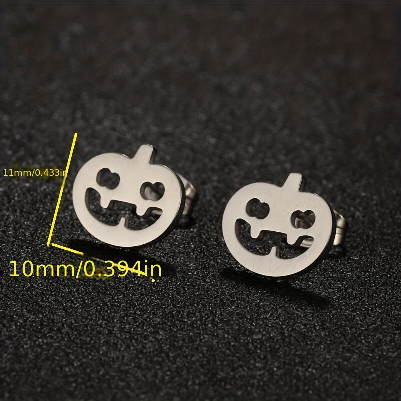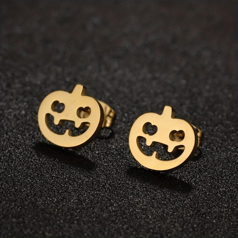 Get into the Halloween spirit with this stylish set of stainless steel pumpkin stud earrings and ghost pendent. Perfect gift for the spooky season!