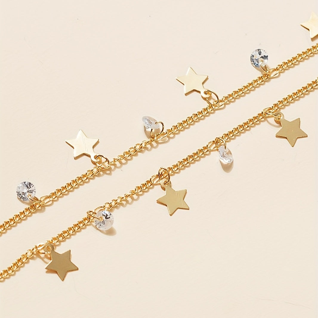 This beautiful anklet features a star and zircon tassel pendant, perfect for summer vibes and beach yoga. It makes a great gift for yourself or a loved one.