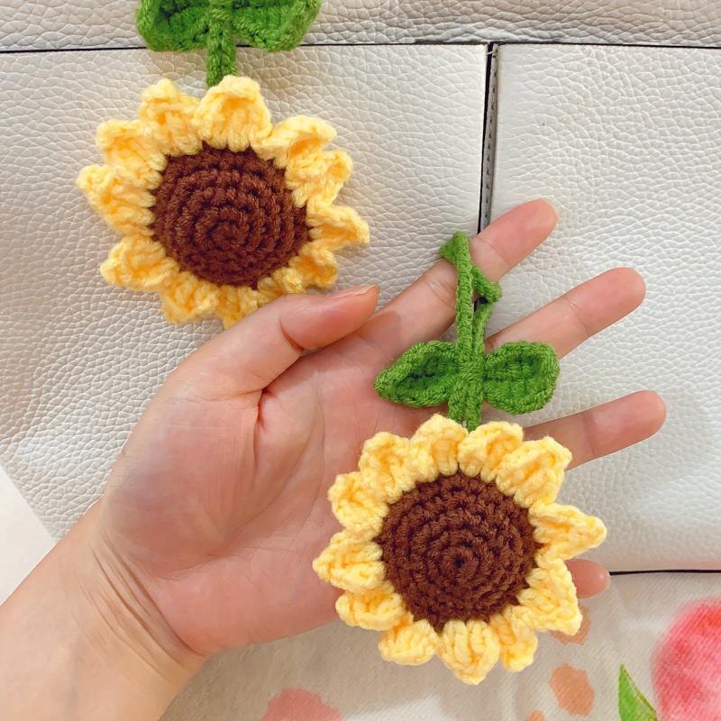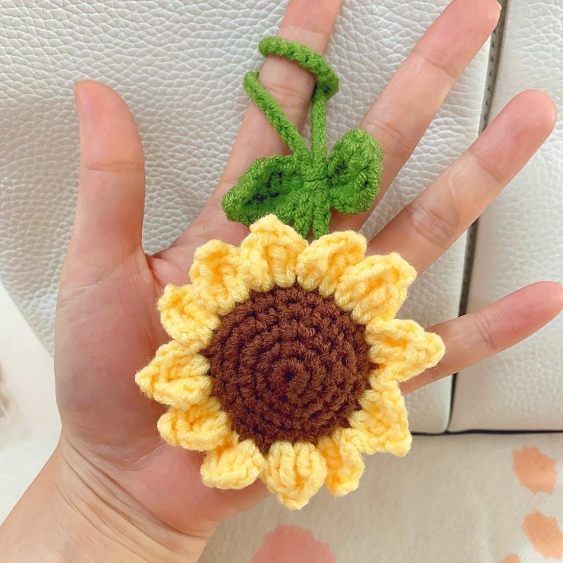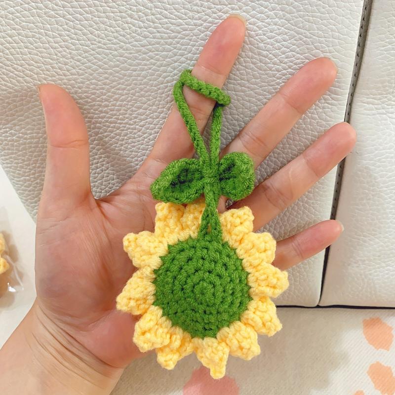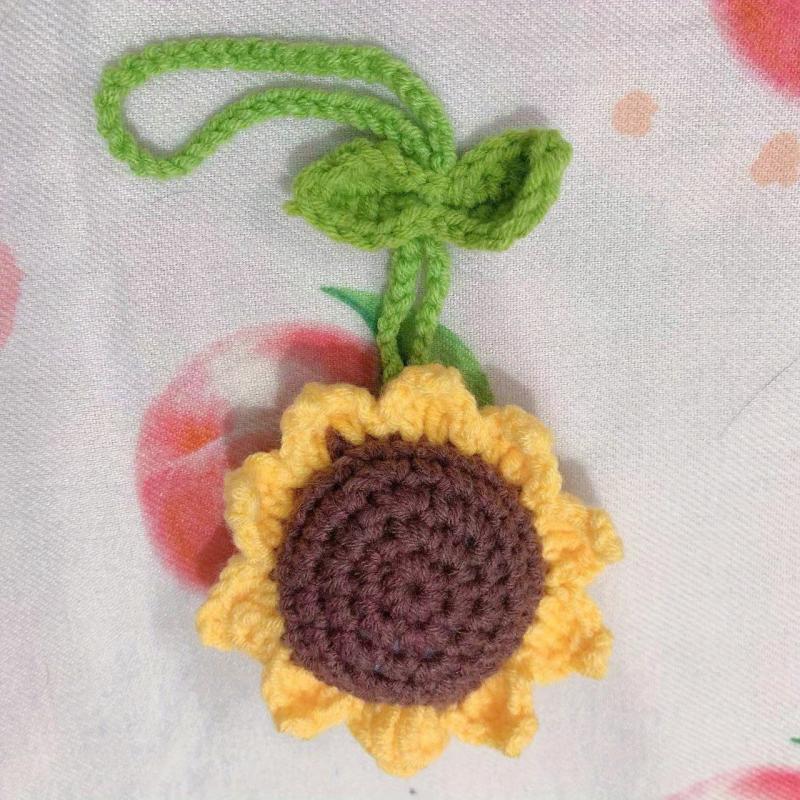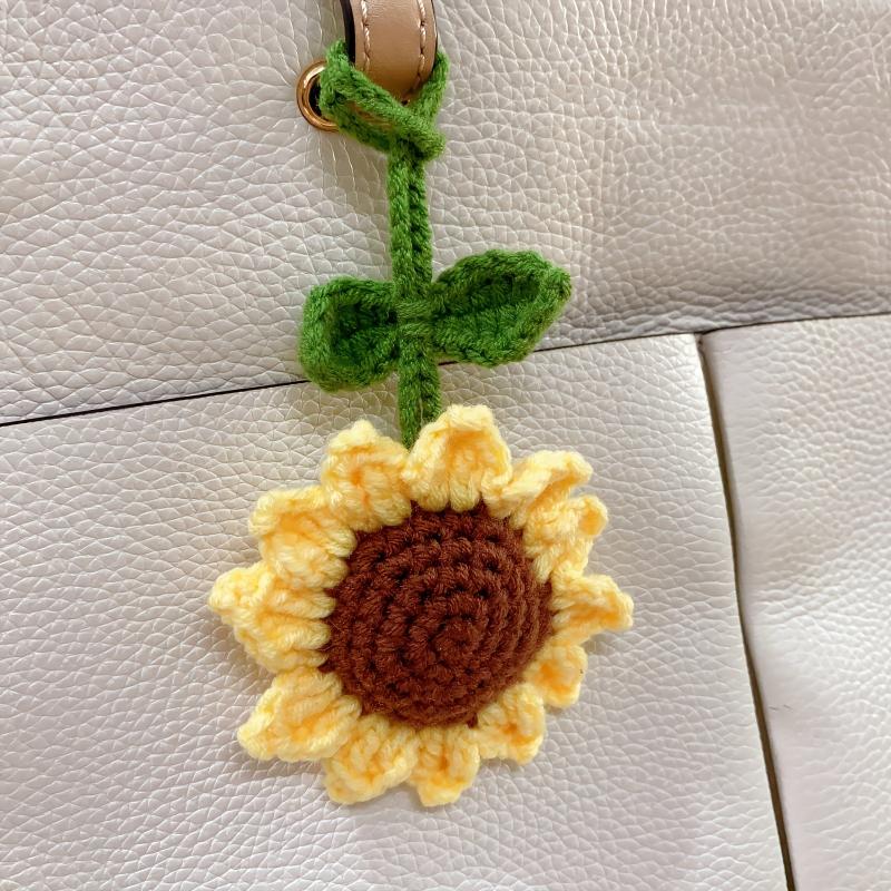 This adorable Sunflowers Knit Keychain is a perfect accessory for bags, purses, or backpacks. Handmade with crochet wool, it adds a charming touch to your style. Makes a great gift for birthdays or special occasions.