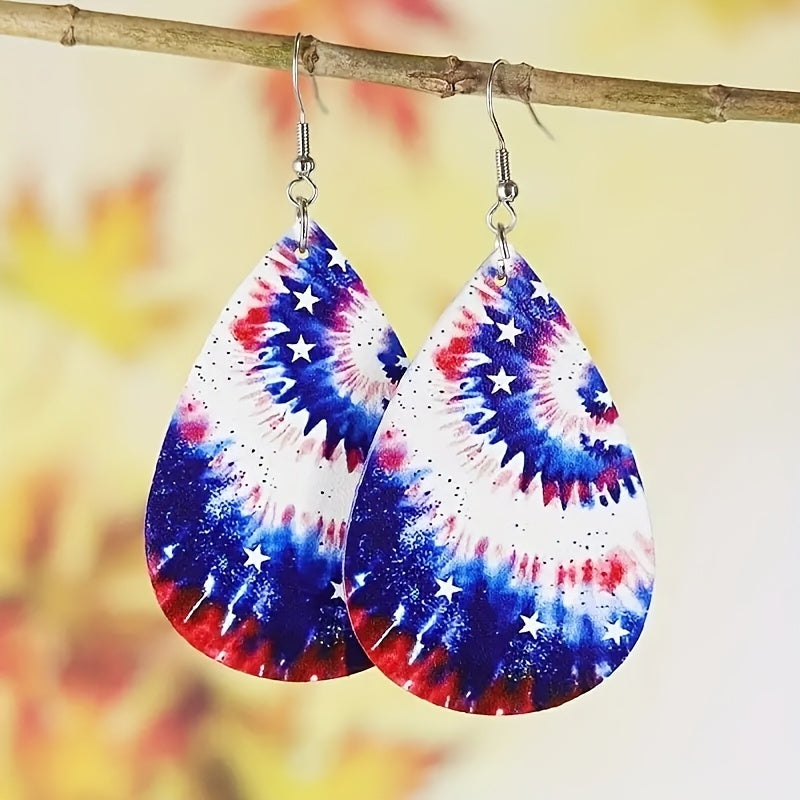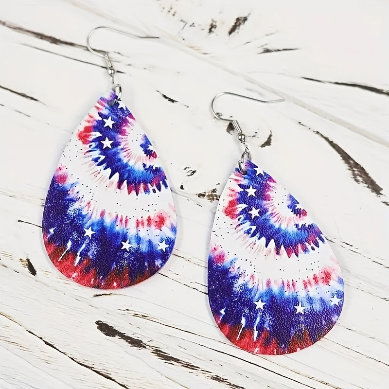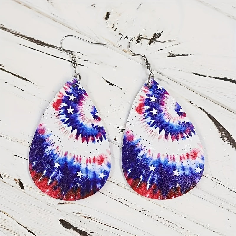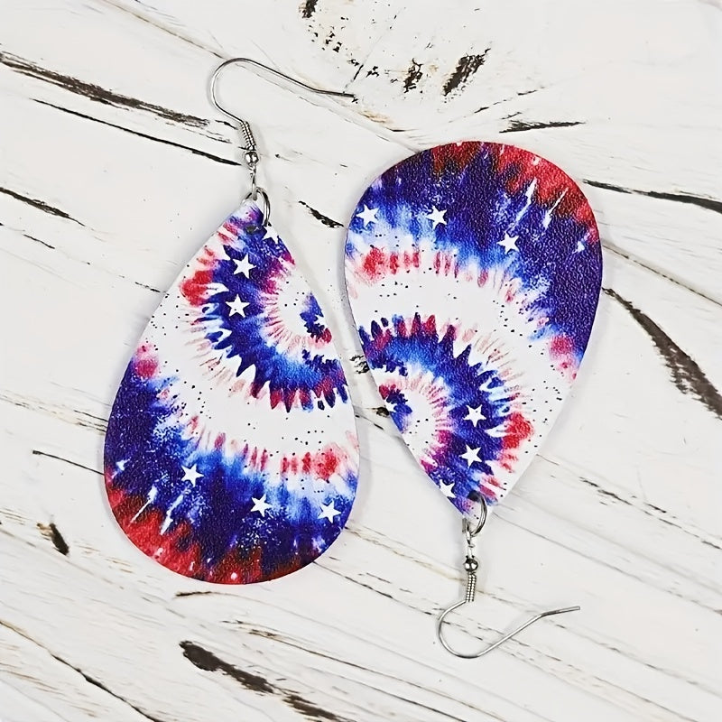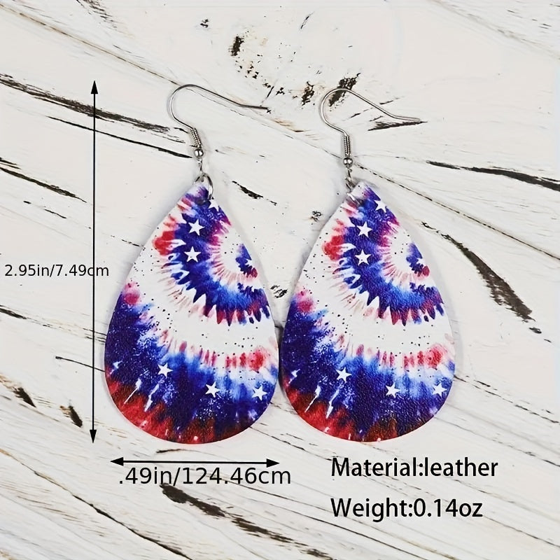 Tie Dye PU Leather Flag Earrings Double Sided Printed Jewelry