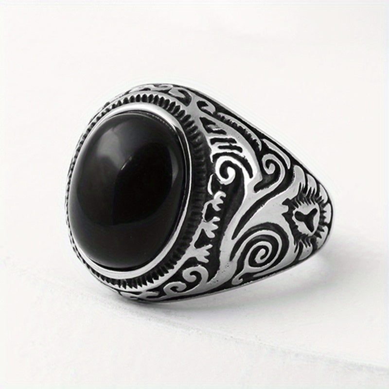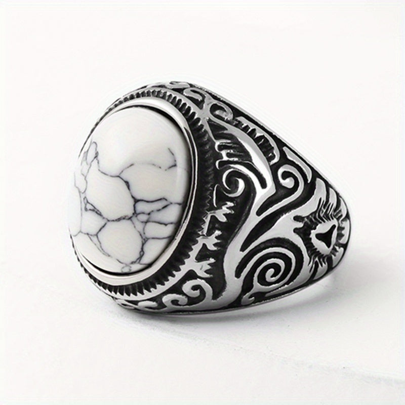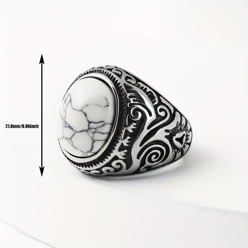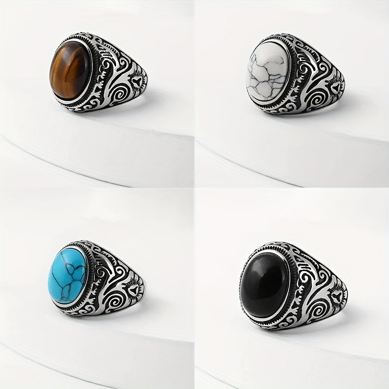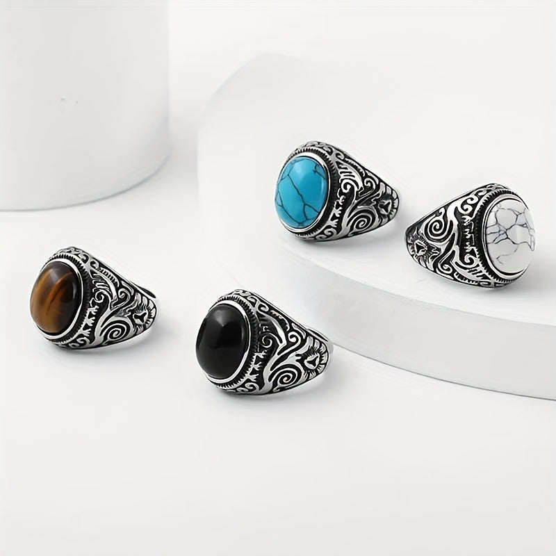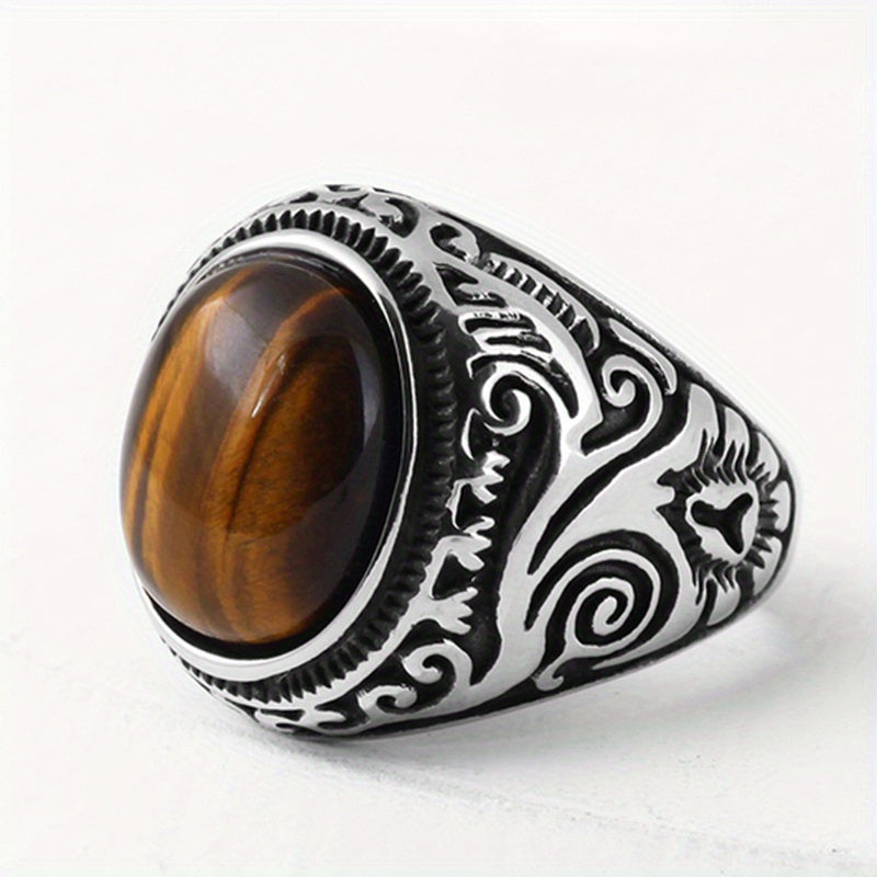 This retro-style ring made of titanium steel features a tiger eye turquoise design, making it a perfect gift for your boyfriend. Make a bold statement with this domineering piece of jewelry.