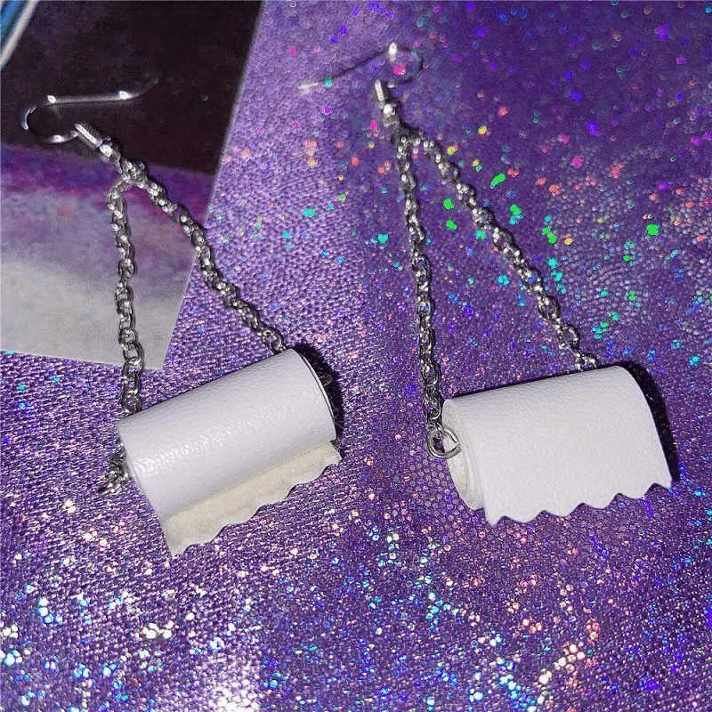 Add a touch of humor to your look with these creative toilet paper roll earrings. Perfect for a fun and unique style statement.